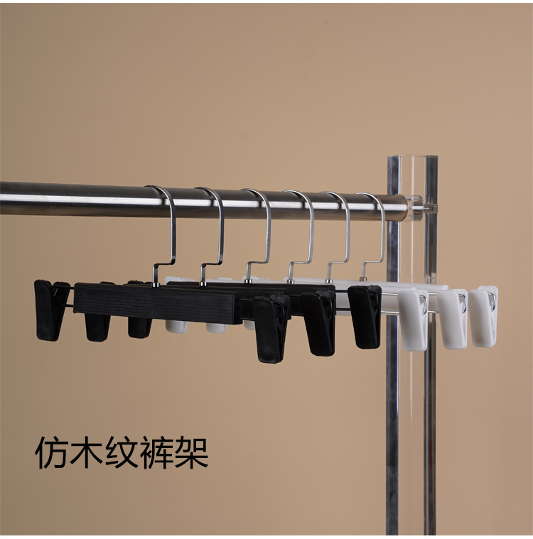 • 플랫 후크 모조 나뭇결 블랙 바지 랙