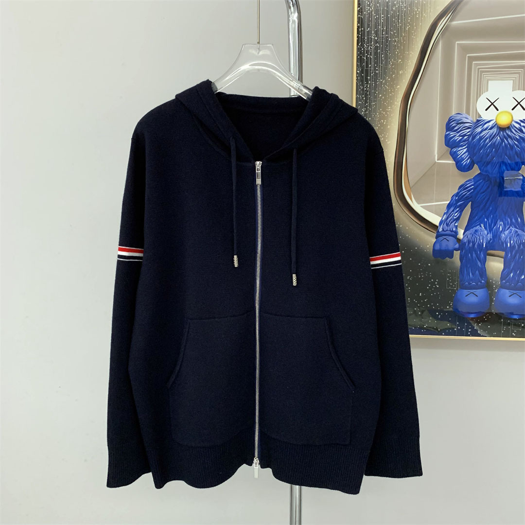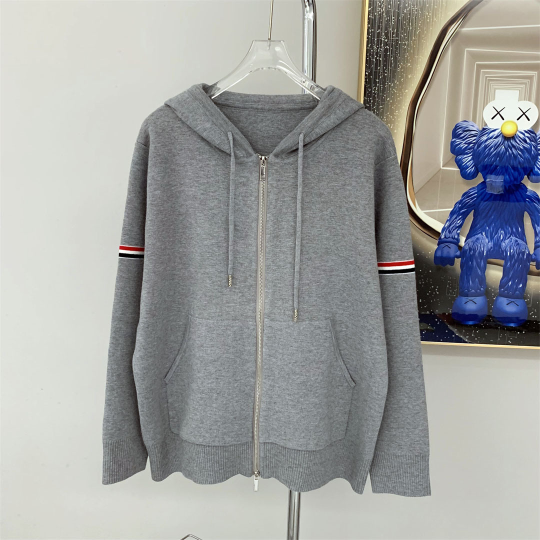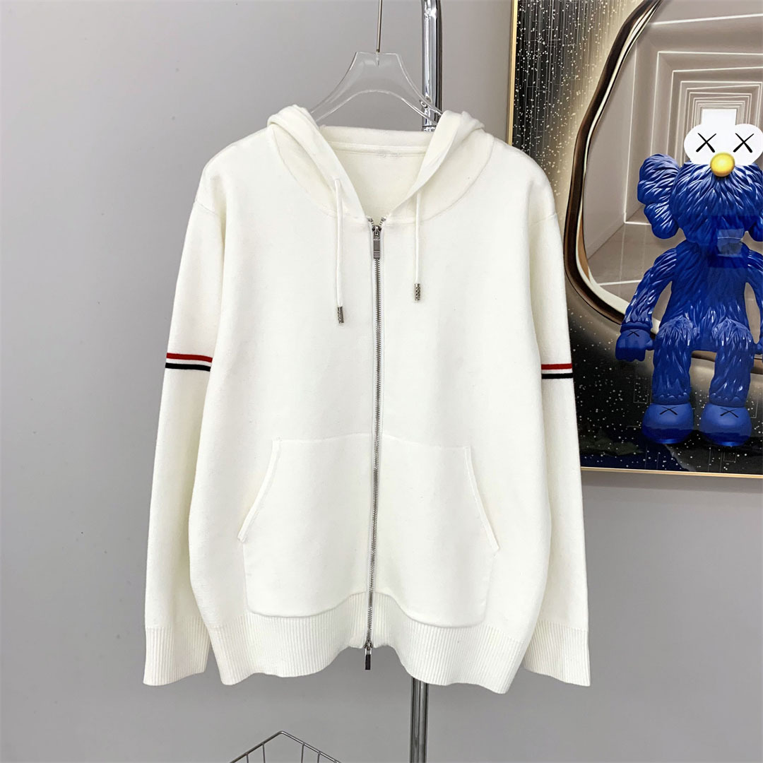 TB 대학 스타일 완장 컬러 스트립 더블 지퍼 후드 니트 가디건 여성용 디자인 센스 대형 포켓 긴팔 스웨터 재킷