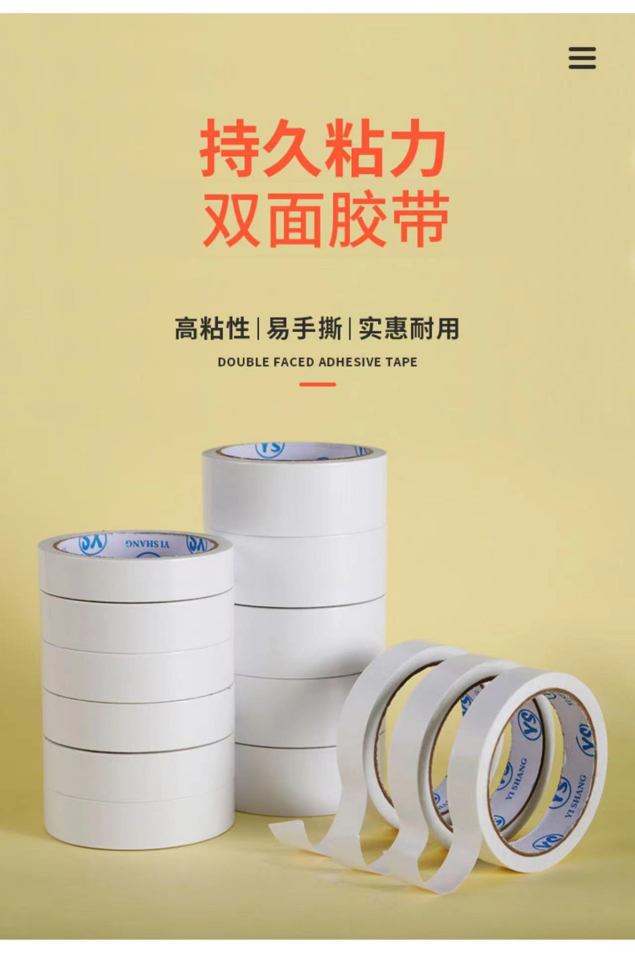 【用途】高强度双面胶带具有抗反弹、翘曲同时还具有较强的粘接力和持粘力,对多种基村有较佳之粘合力,适用于手工、贴色卡、礼品包装等。