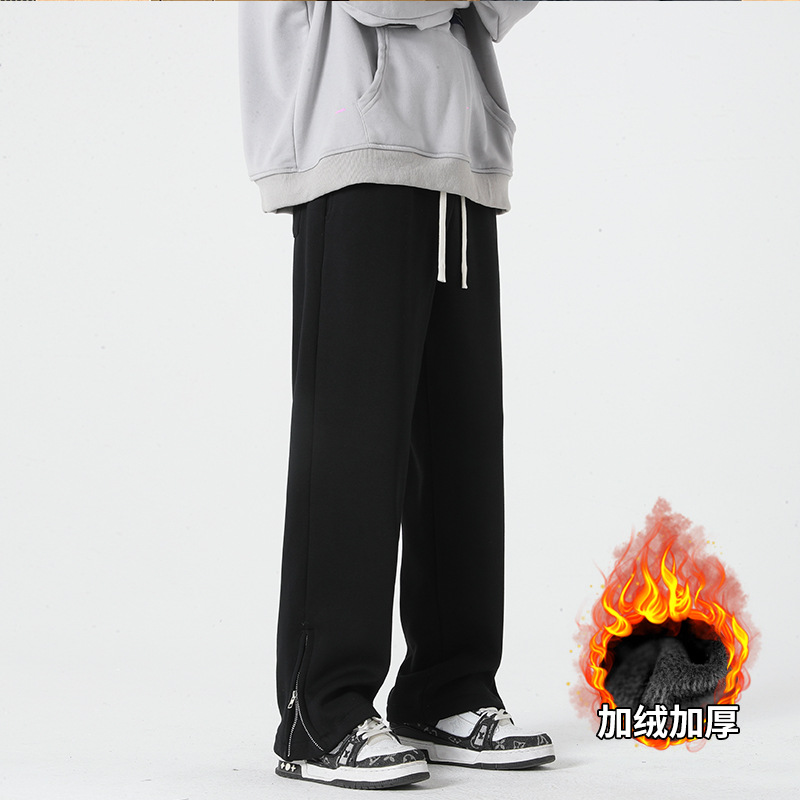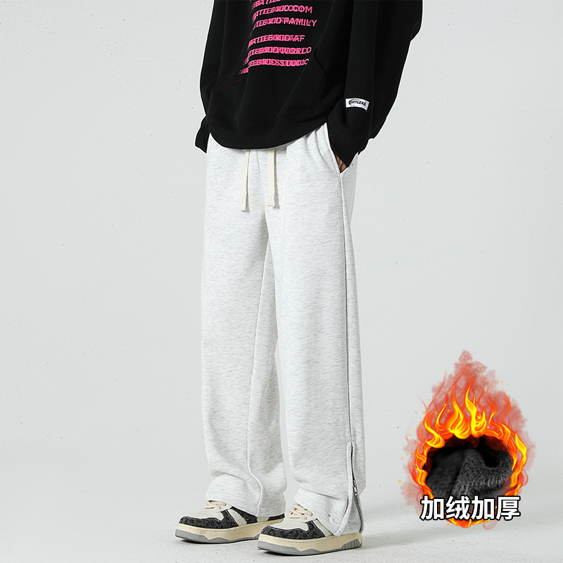 겨울 신상품 트렌디 남성 캐주얼 바지 느슨한 홍콩 스타일 면 중국 면 합성 기모 바지 스트레이트 바지 캐주얼 바지 바지