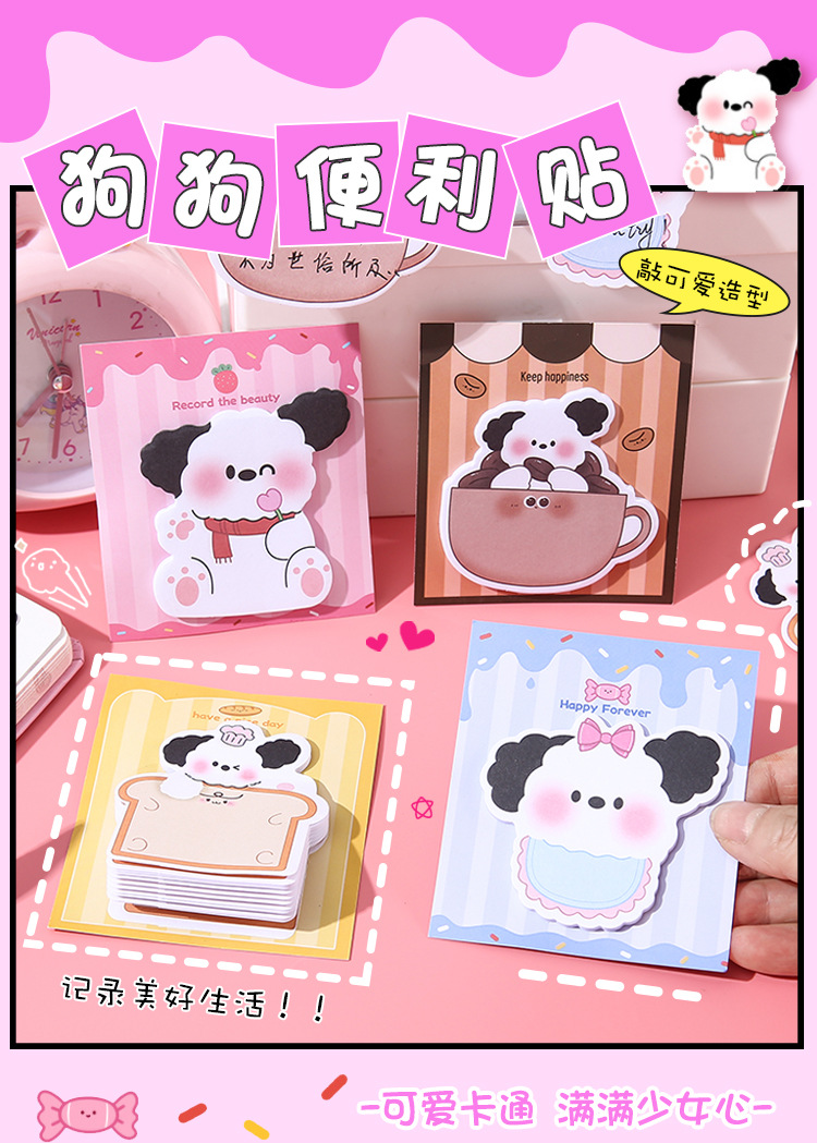 귀여운 개 포스트잇 만화 하이 컬러 값 찢을 수 있는 접착 특수 모양의 포스트잇 종이 학생 문구 메시지 N 스티커스토어 가기