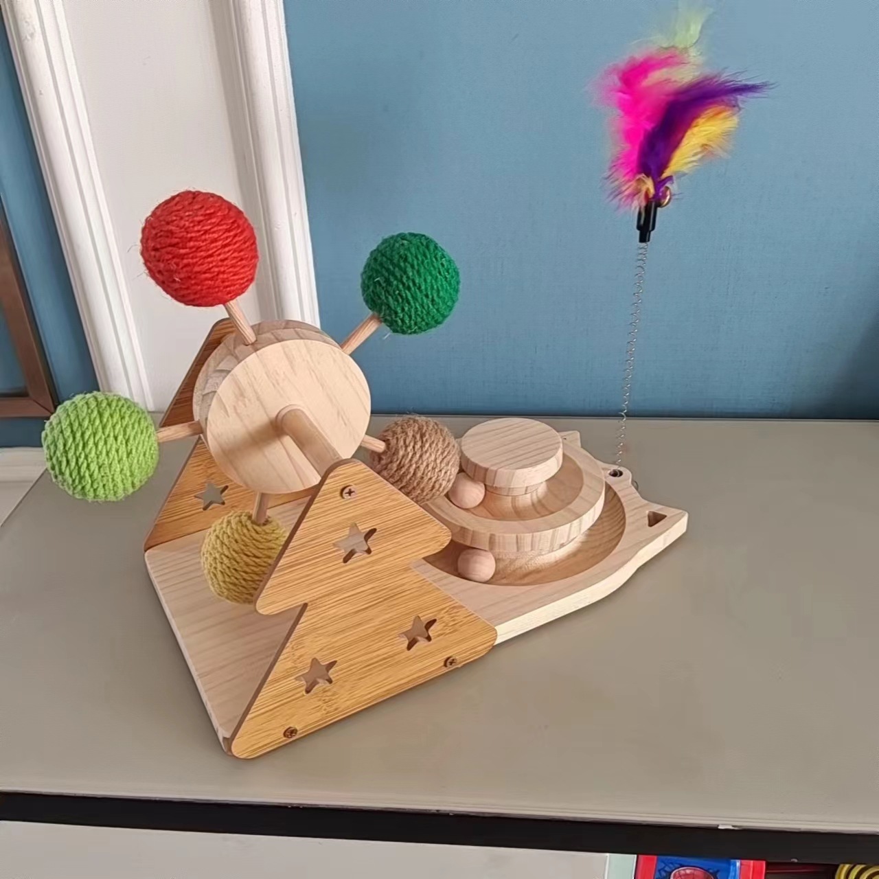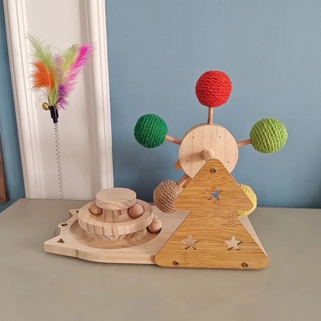 자기 하이-재미있는 고양이 스틱 고양이 관람차 사이잘 볼 단단한 나무 고양이 턴테이블 기지 다기능 교육 고양이 장난감스토어 가기