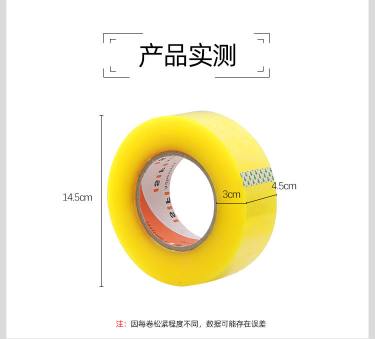 • 투명한 노란색; 너비 5.5cm, 길이 160 미터 [금속 포장기를 보내기 위해 전체 상자를 구입하는 40 롤 상자]