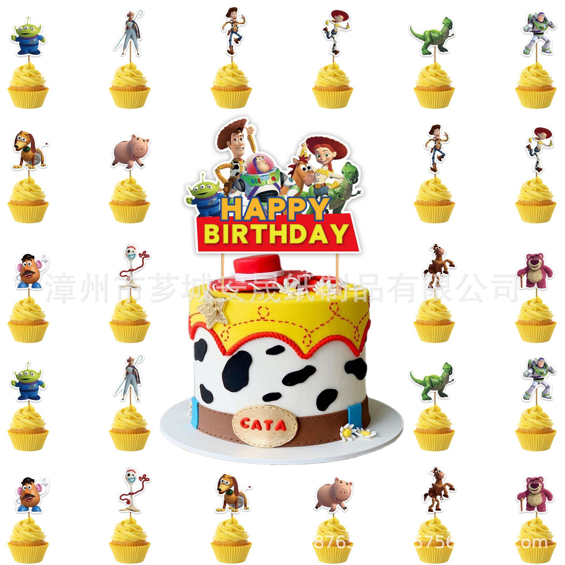 재고 토이 스토리 생일 파티 장식 생일 케이크 카드 크기 깃발 장식 용품스토어 가기