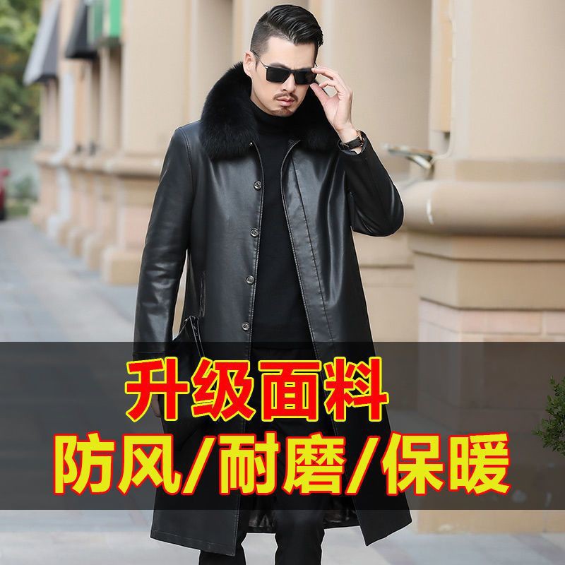 중년 및 노인 남성의 긴 무릎 길이 가죽 트렌치 코트 남성 기모 두꺼운 따뜻한 가죽 코트 아버지의 겨울 코트 정품 가죽스토어 가기