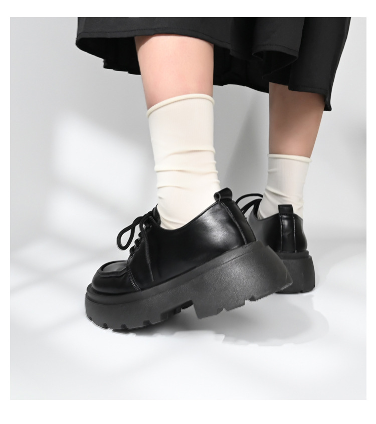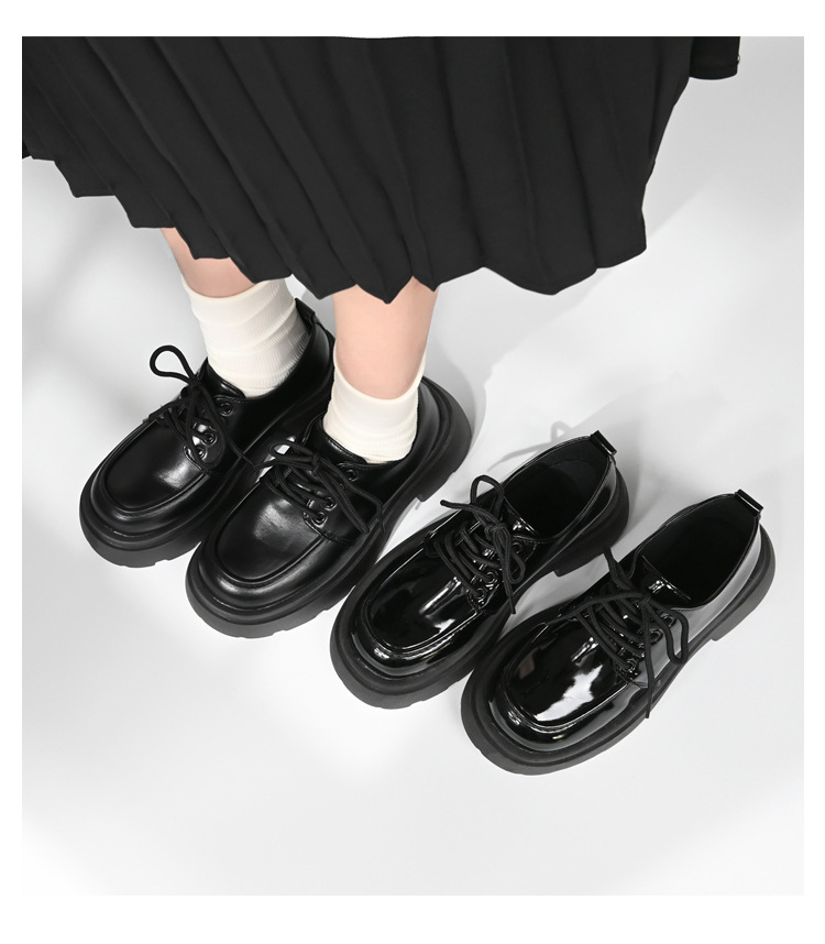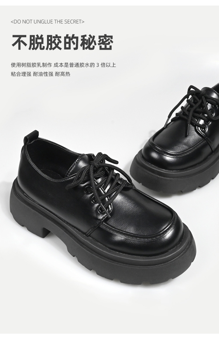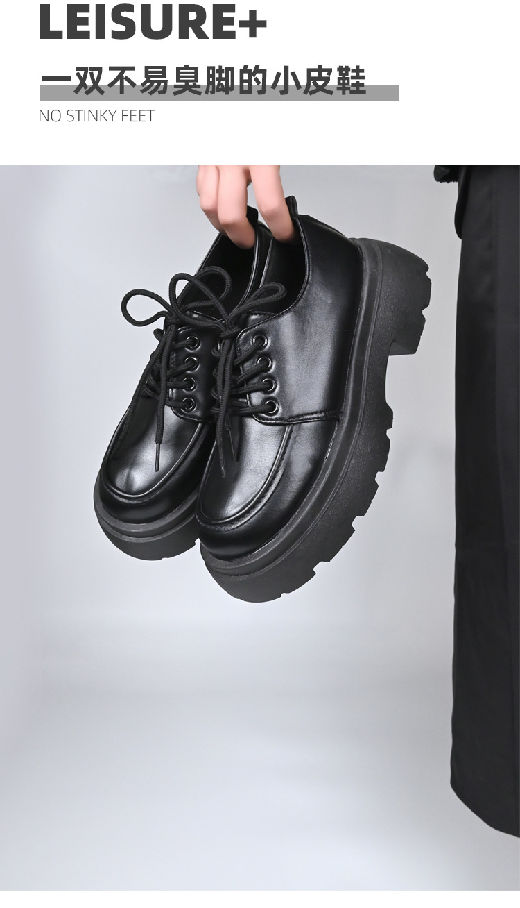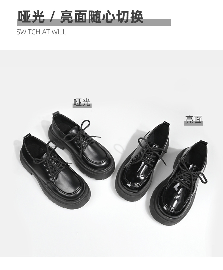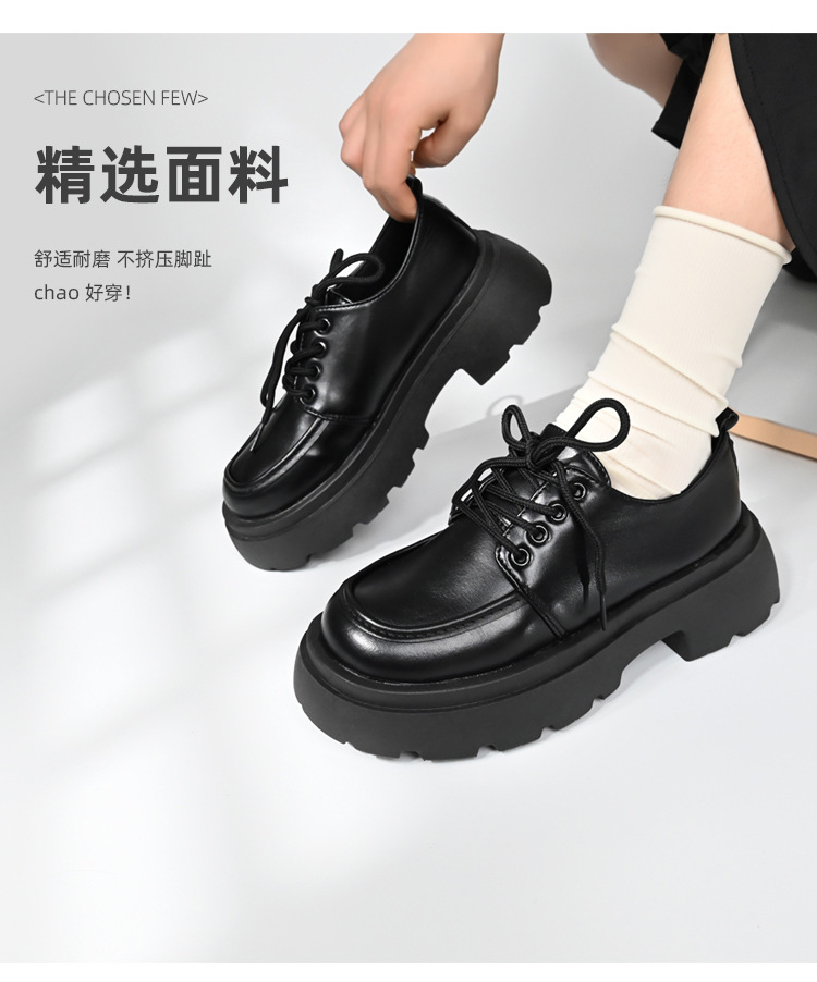 두꺼운 밑창의 여성용 가죽 신발, 2024년 봄/가을 신상, 하이힐, 영국 스타일, 블랙, 다용도, 레이스업 로퍼스토어 가기