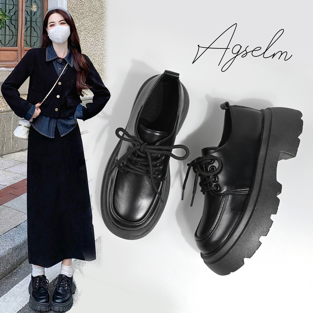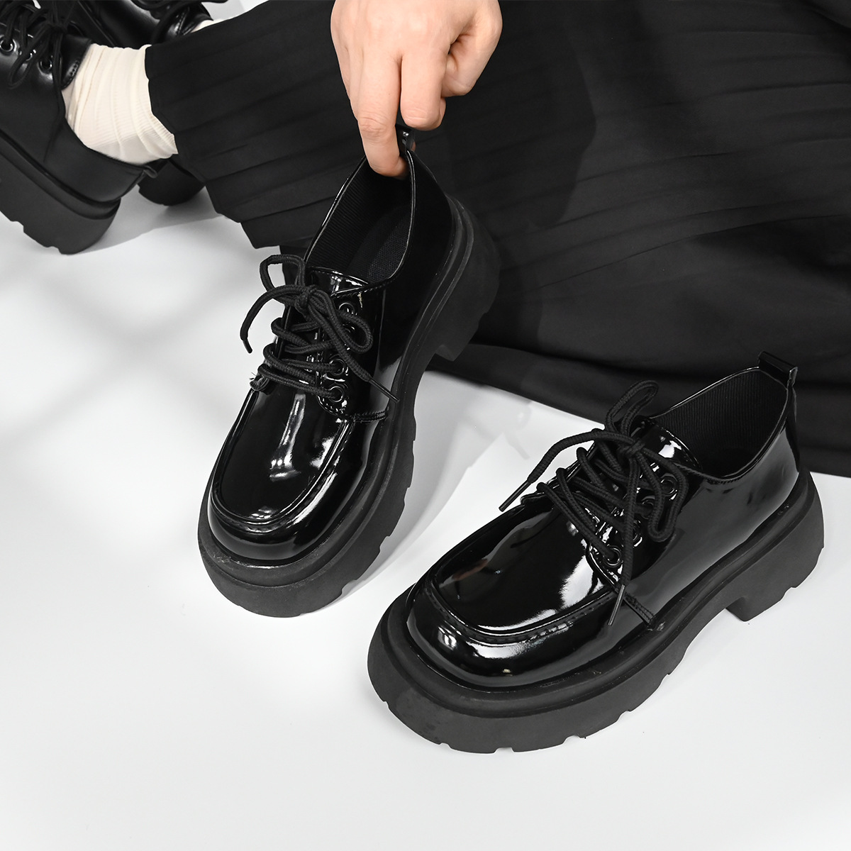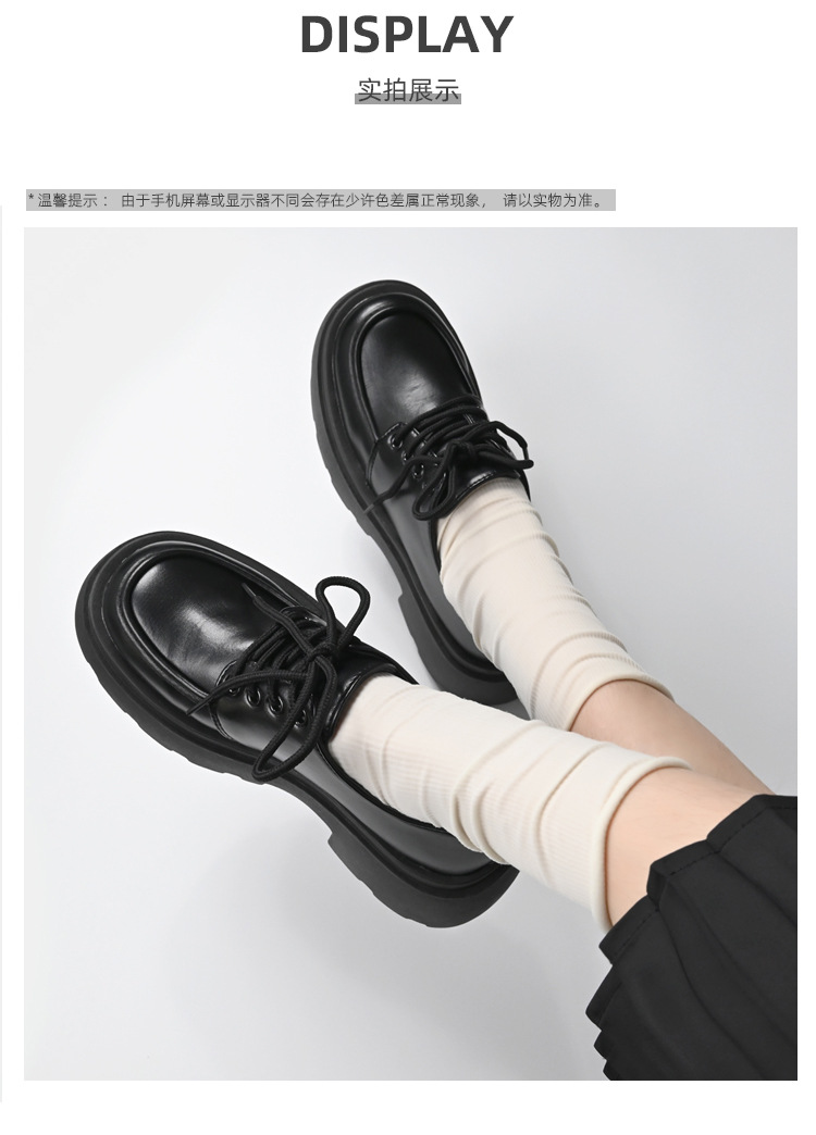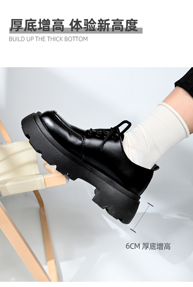 두꺼운 밑창의 여성용 가죽 신발, 2024년 봄/가을 신상, 하이힐, 영국 스타일, 블랙, 다용도, 레이스업 로퍼스토어 가기