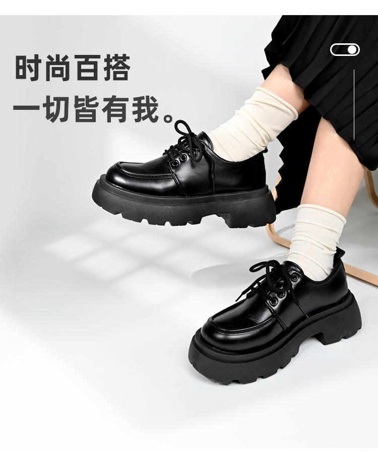 두꺼운 밑창의 여성용 가죽 신발, 2024년 봄/가을 신상, 하이힐, 영국 스타일, 블랙, 다용도, 레이스업 로퍼
