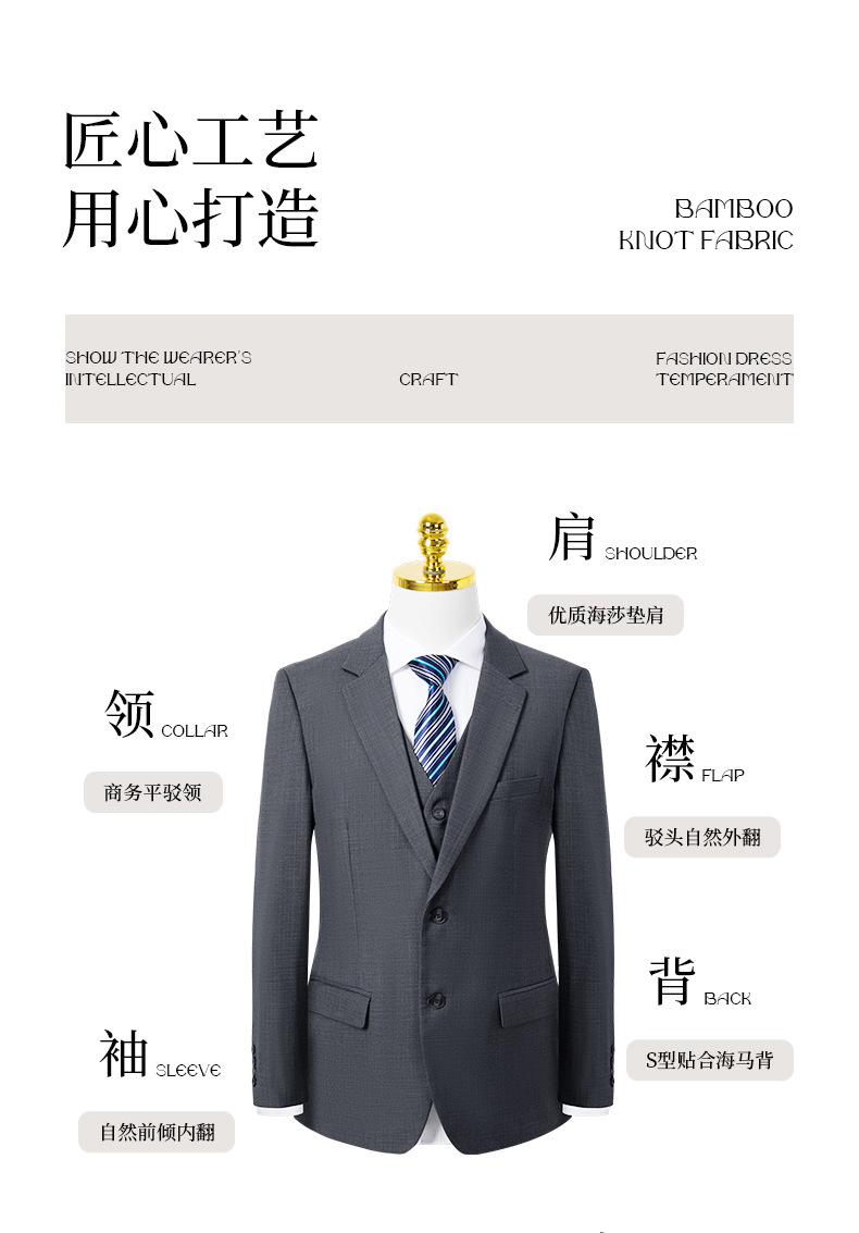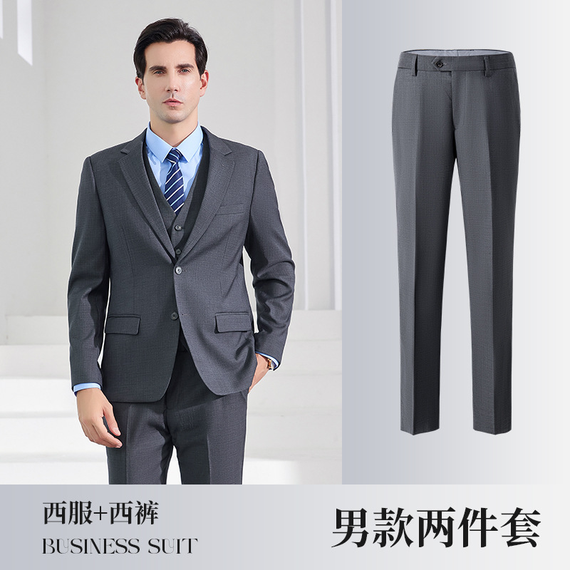• 3 조각: 높은 회색 남성 세트 바지 807 파란색 셔츠