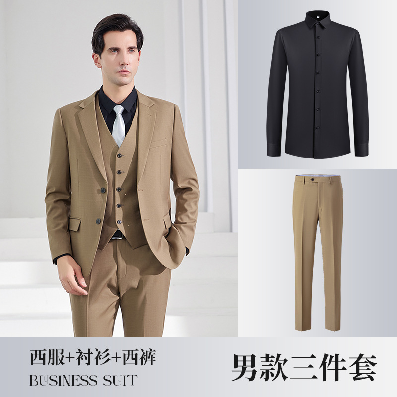 • 3 조각: 라이트 커피 남성용 세트 바지 807 블랙 셔츠