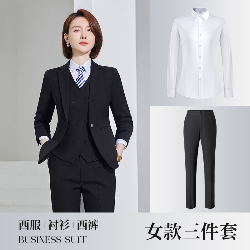 • 3 개: 블랙 여성용 세트 바지 807 흰색 셔츠