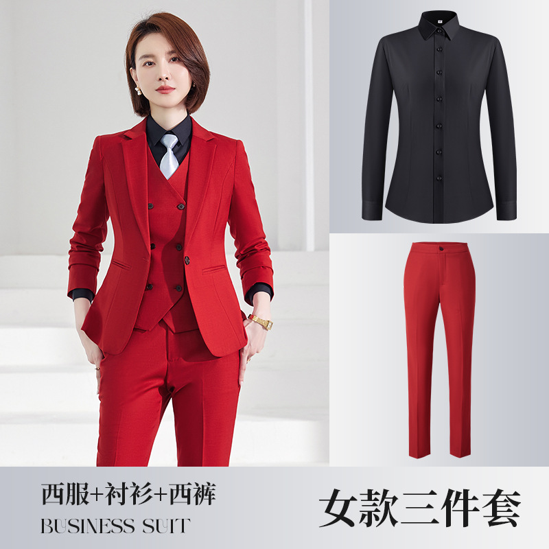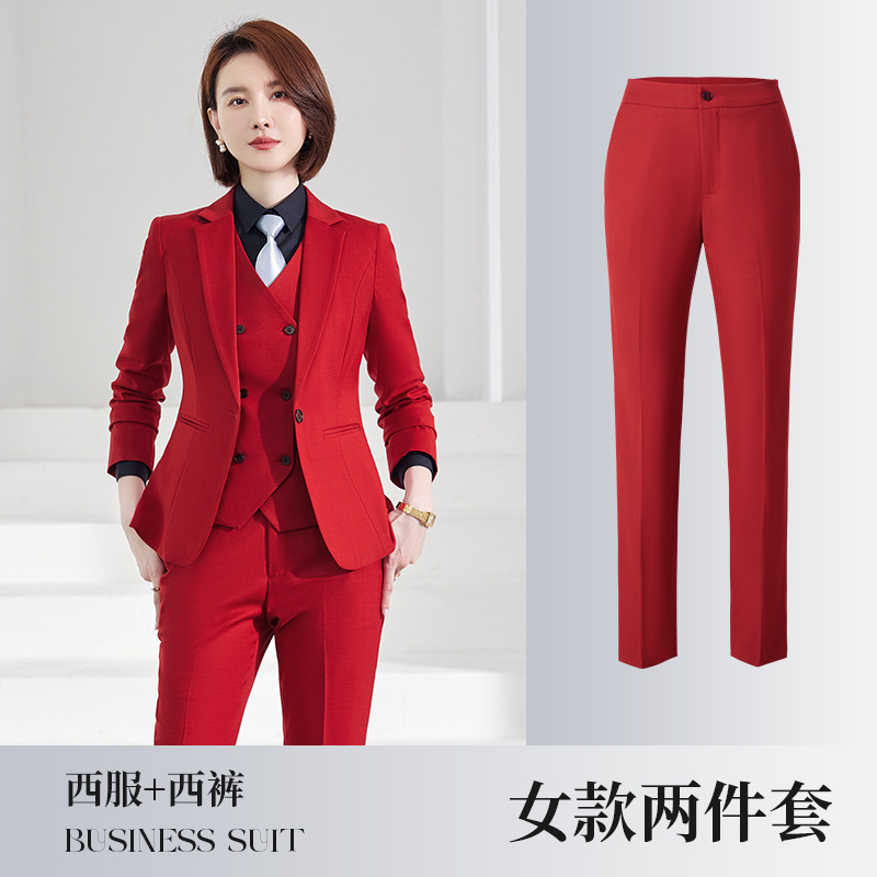 가을과 겨울 두꺼운 고급 비즈니스 세트 세트 남성과 여성의 툴링 빅 레드 변호사 관리자 전문 정장 작업복스토어 가기