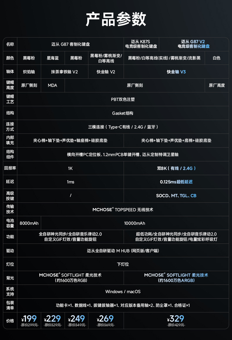 MCHOSE G87V2 맞춤형 키보드 GASKET 구조 기계식 키보드 롤링 3 모드 게임용 키보드스토어 가기