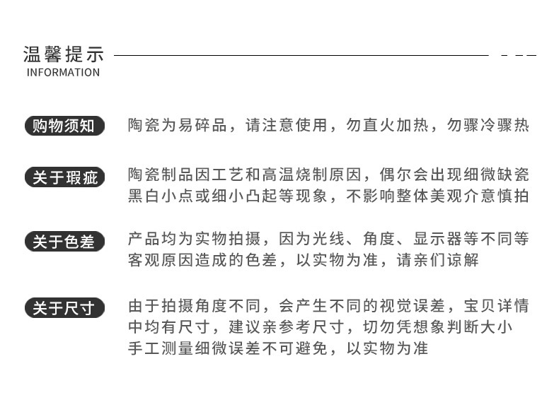 量大 联系客服 运费可更改下单请咨询 购买须知 1.产品报价为,品牌产品价格不稳定,库存,价格仅为参考,不含运费、税费,运费由买家承担,具体运费请咨询客服; 2.本公司所有产品均为实拍图,由于显示器等原因可能会造成一些色差,我们会尽量保持色彩一致; 3.产品存在少量瑕疵属于正常,部分产品不补破损,购买前请咨询客服; 关于发货 1.定制礼品一般需要2-3天才能做好发货,具体时间详询客服。整件货物以上一律通过物流公司托运的形式,运输到买家指定的城市,国内直达城市平均2-3天到,中转城市平均3-5天到; 3.因长途运输有时间和自然不可抗拒因素,请提前安排好时间下单,因时间耽误买方,本公司不承担责任; 2.无法确保提货地点离您位置很近;物流一般到市和县,不提供送货上门(如需送货上门,应加收物流送货费); 3.公司默认物流:京东、贰仟家、宇鑫、、金象、甲乙丙丁、方圆、正和、黑豹、豪祥、鸿泰、安能等(其他物流请联系客服); 售后服务 1.客户在收货之后发现产品有质量问题,请速与客服联系,洽谈更换或补发产品(如24小时内未联系客服,视为放弃); 1)如发现少发,错发商品,请您及时联系我们客服,我们将在时间复查配货发货流程,如确实是本公司原因,本公司将承担应有的责任。 2.产品运输过程中难免会有包装箱刮擦,磨损,我们尽量降到低,如果不能接受请勿下单。如果签收时发现破损比较严重,请勿签收,及时联系客服,一经签收我们将无法找运输公司索赔,后果自行承担。 3.货物发出之前我们会进行严格的质量把关,但产品之间的刮擦在所难免,在出库与物流运输期间可能会有正常的轻微刮擦,我们在尽量规避的时候也希望得到您的理解