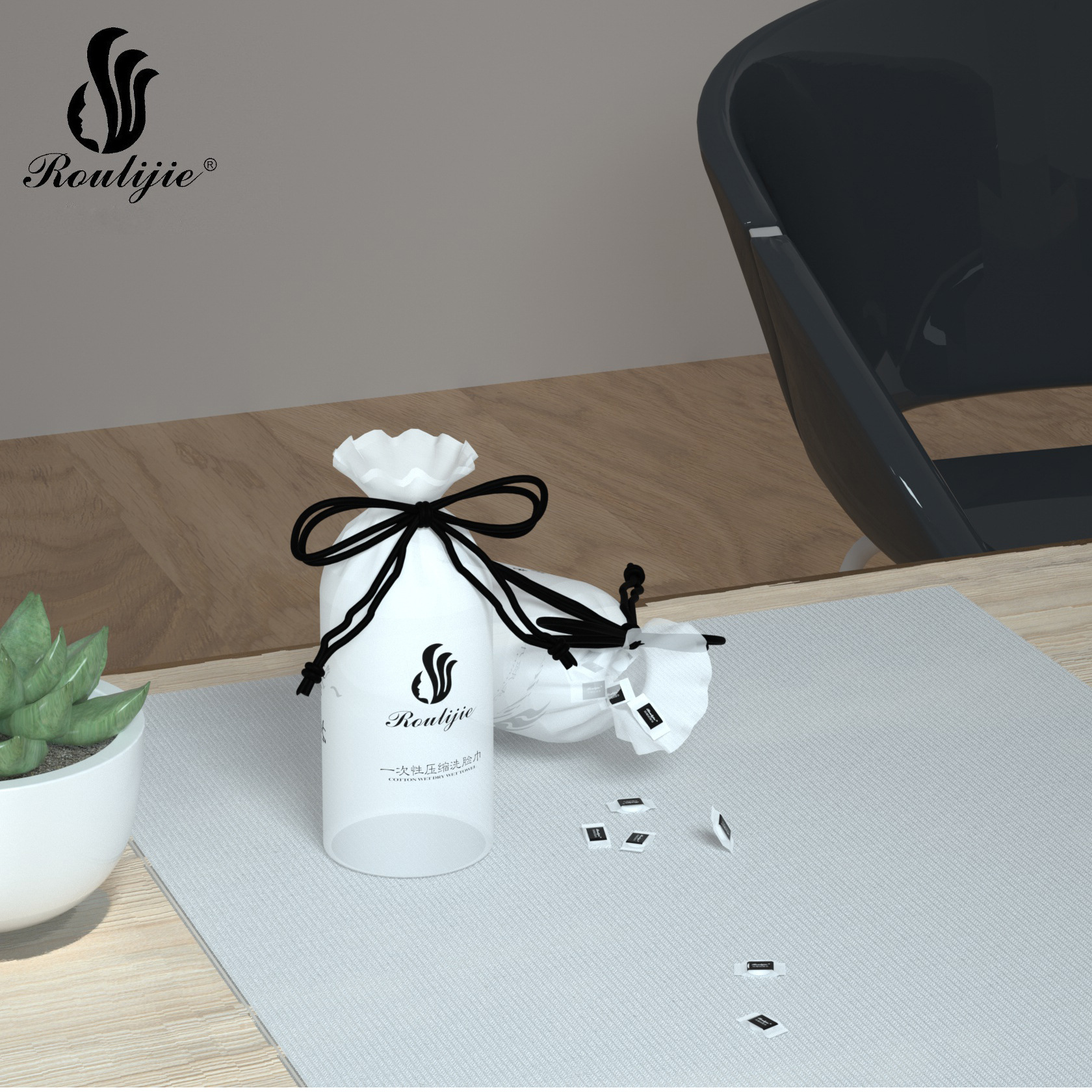 정품 제조업체 Wenzhou Roulijie 압축 일회용 페이셜 클렌징 타월 두꺼워지고 확대된 여행용 휴대용 면 부드러운 클렌징 타월스토어 가기