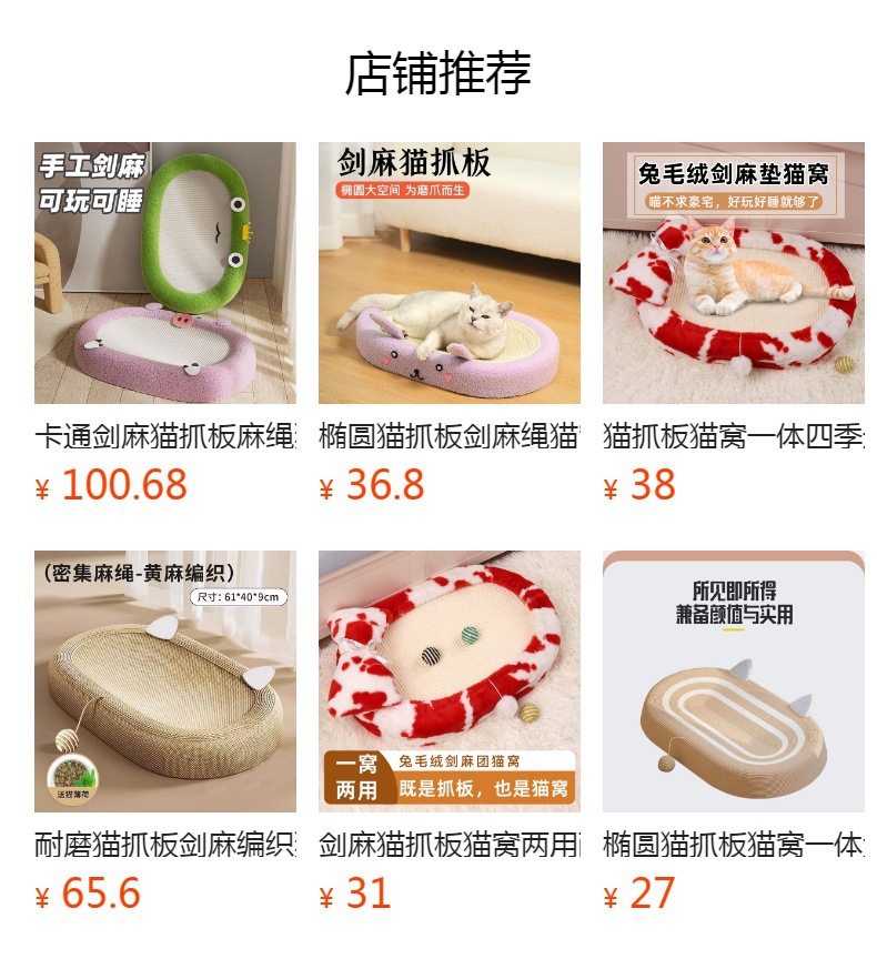 타원형 사이잘삼 고양이 스크래치 보드 고양이 둥지 통합 사이잘삼 패드 대형 고양이 긁는 분지 고양이 발톱 그라인딩 셀프 하이 장난감스토어 가기