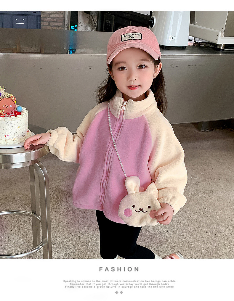 봄과 가을 새로운 아동복 여아 폴라루스 코트 어린이 캐주얼 따뜻한 지퍼 셔츠 어린이 긴팔 스포츠 탑