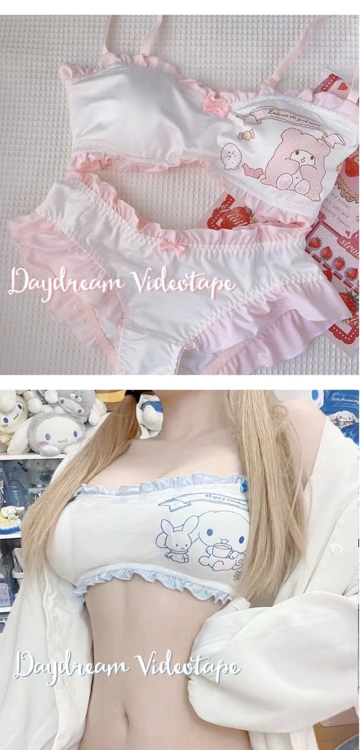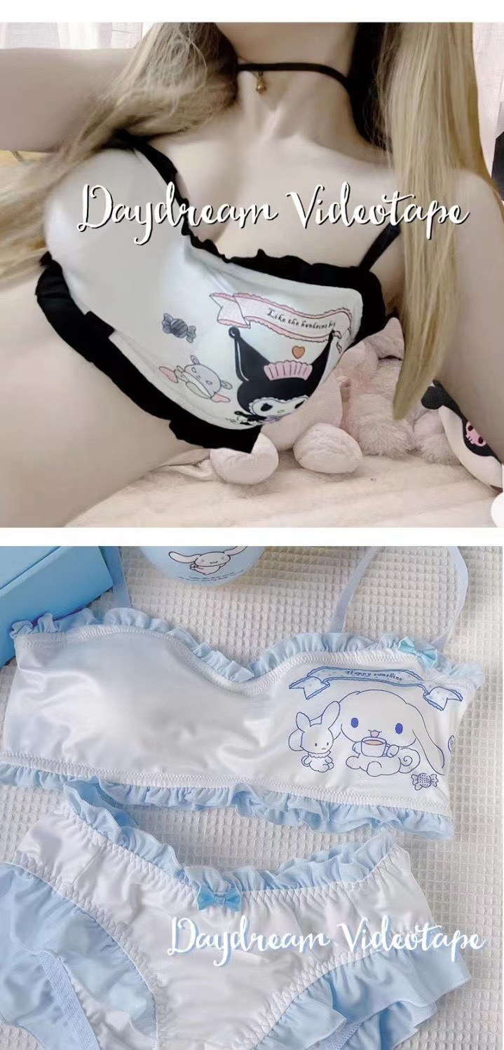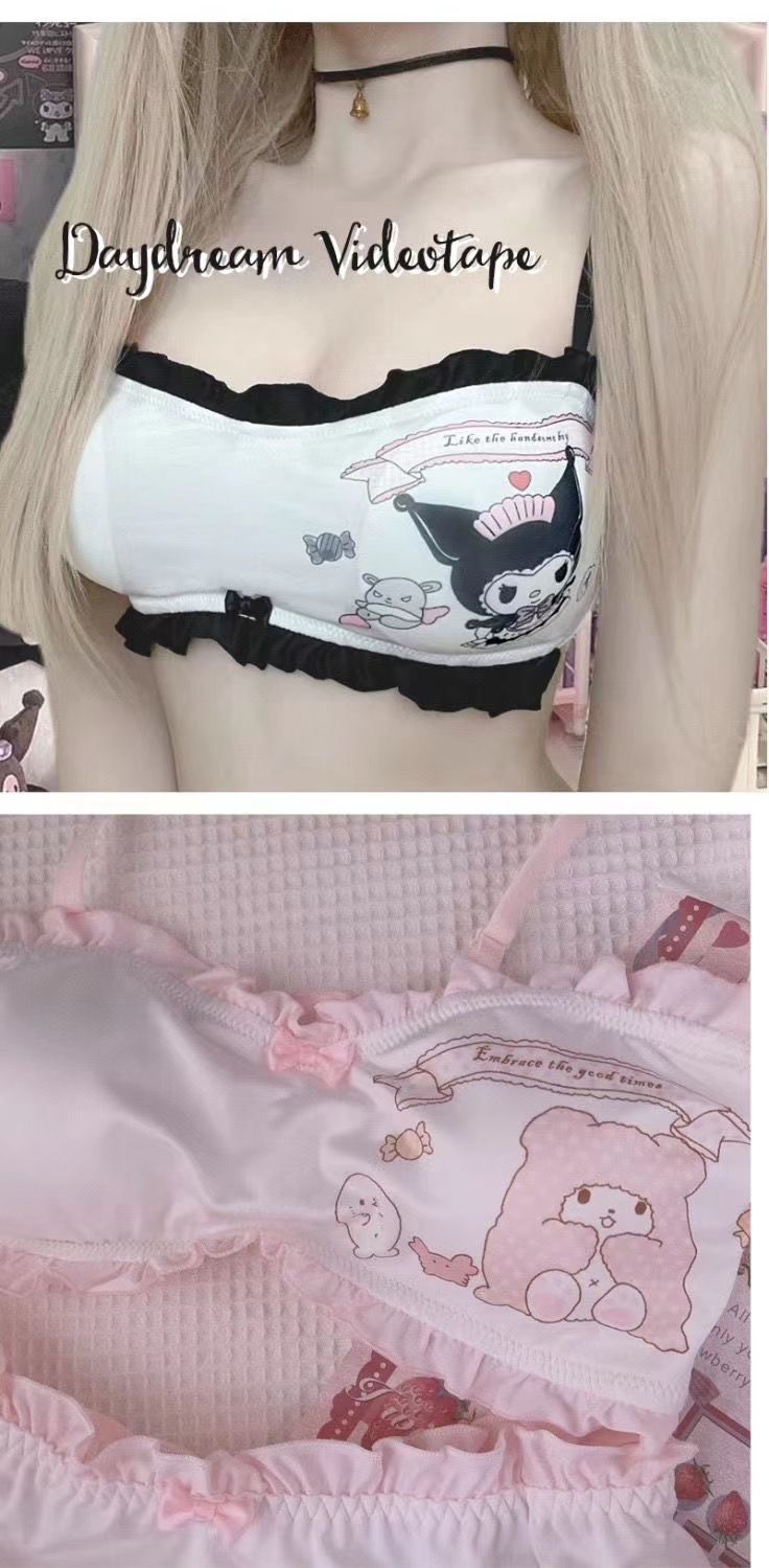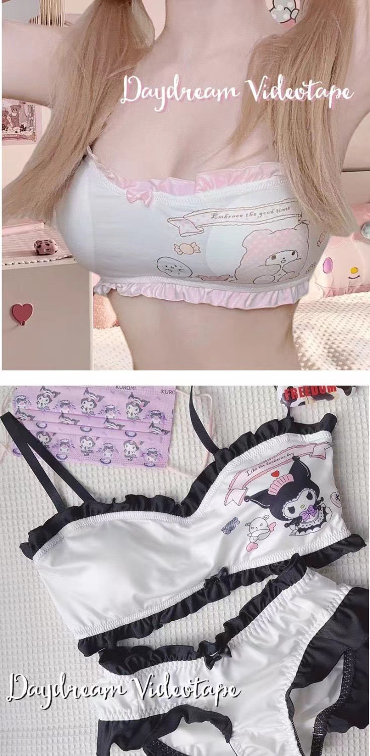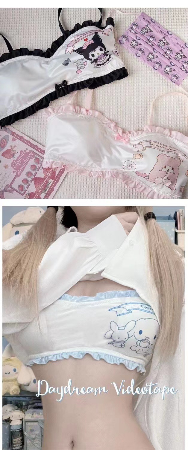 소녀의 귀여운 만화 Kulomi 브래지어 세트 학생을위한 강철 반지없이 달콤한 작은 신선한 얇은 속옷스토어 가기