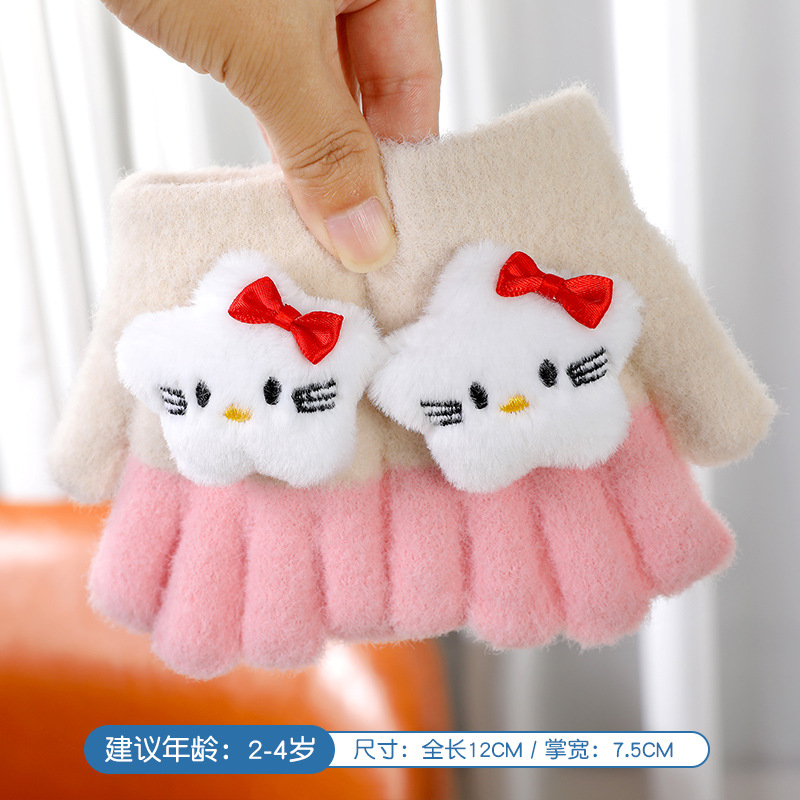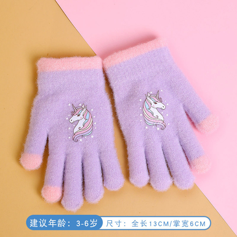 아기 다섯 손가락 장갑 겨울 따뜻한 장갑 소년과 소녀를위한 작은 어린이를위한 만화 플러시 두꺼운 부동액 방지 장갑