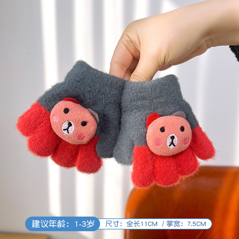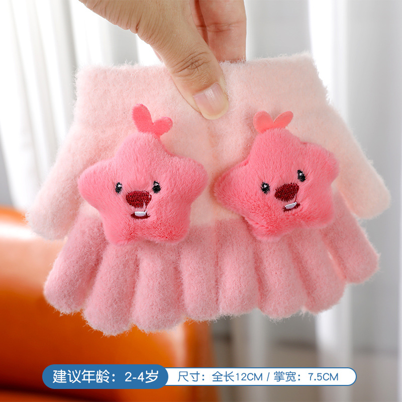 아기 다섯 손가락 장갑 겨울 따뜻한 장갑 소년과 소녀를위한 작은 어린이를위한 만화 플러시 두꺼운 부동액 방지 장갑스토어 가기