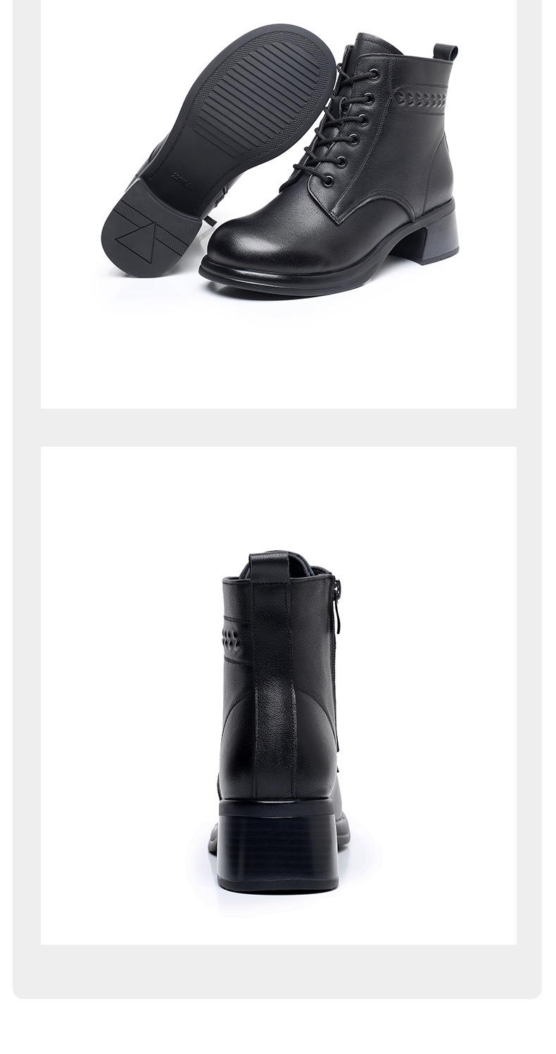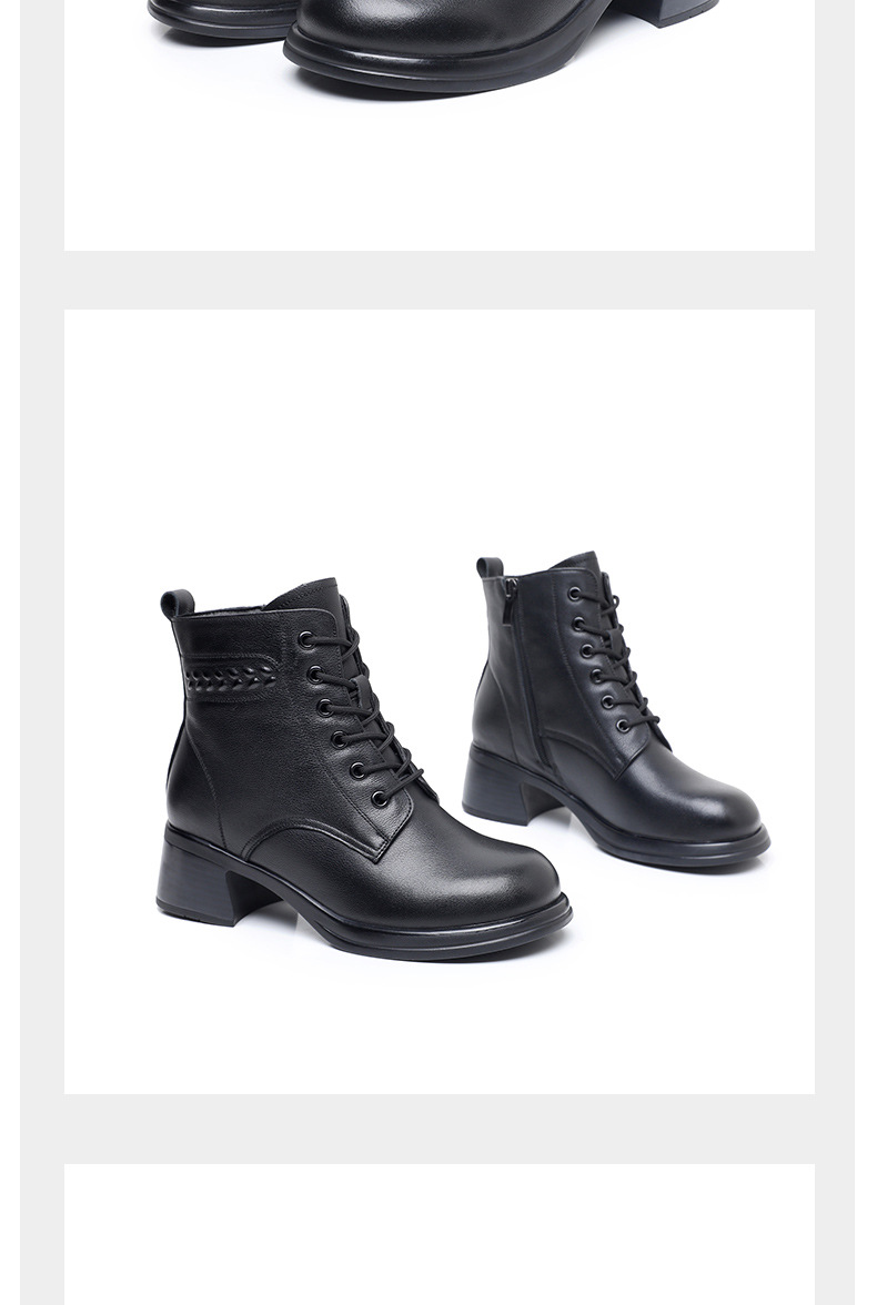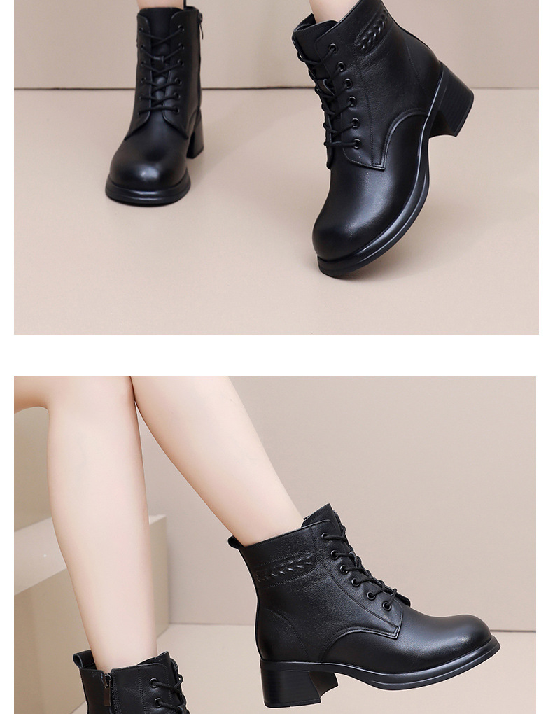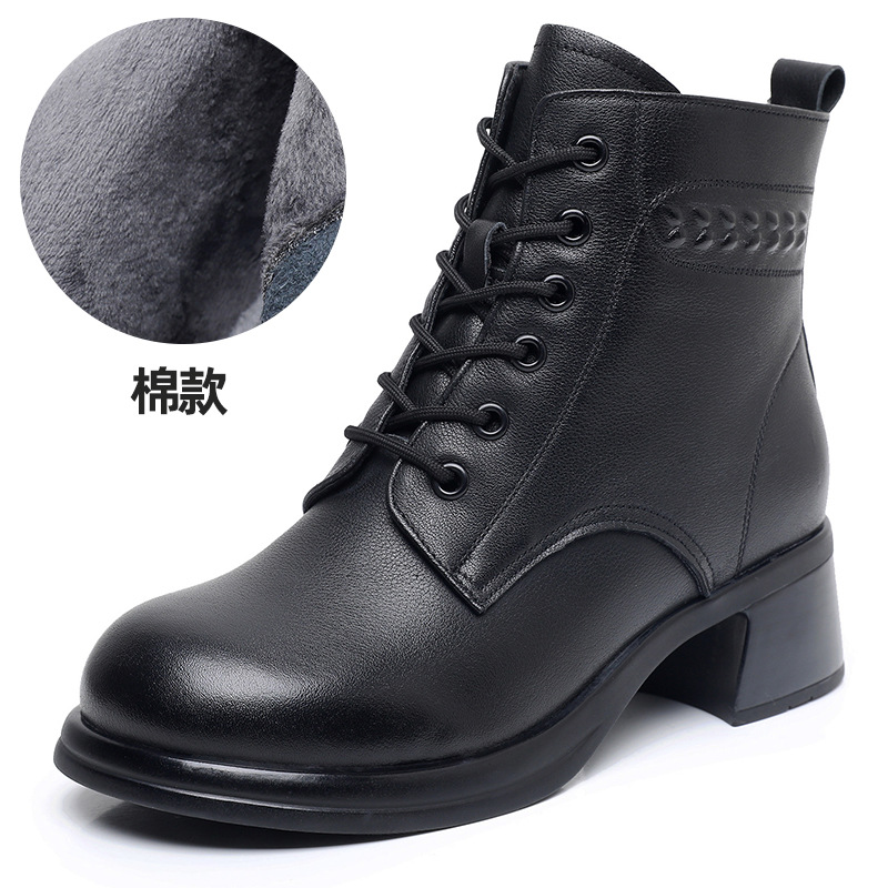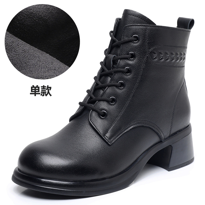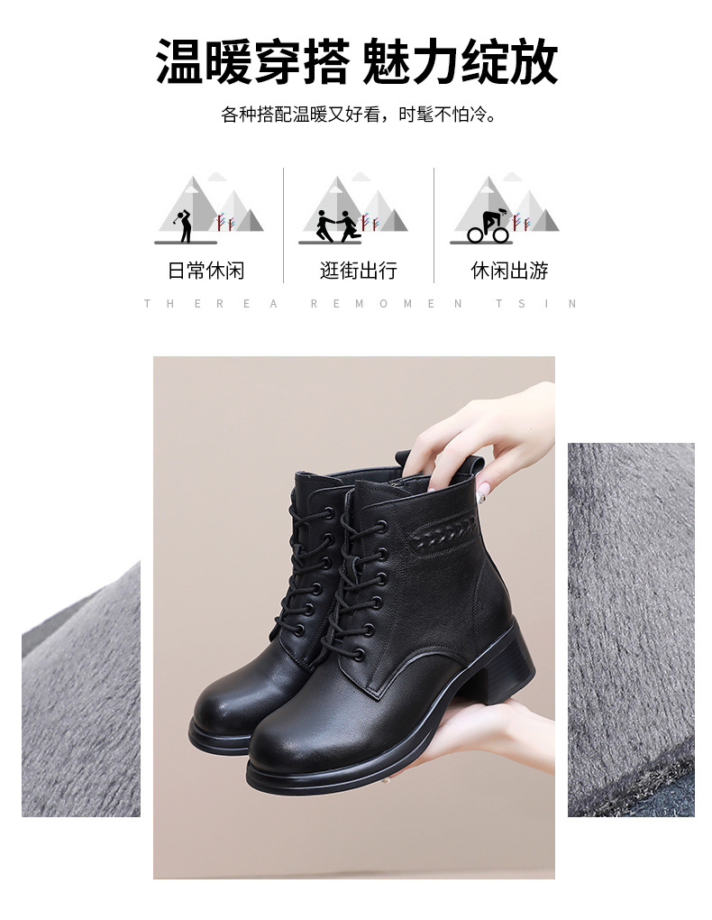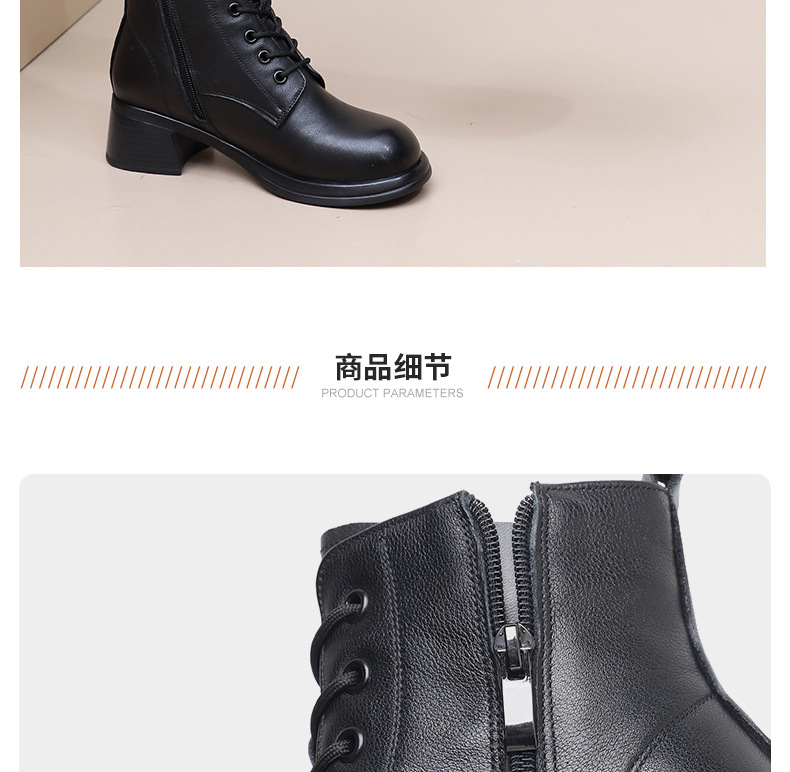 2023 가을과 겨울 새로운 첫 번째 레이어 소 가죽 미드 힐 영국 소프트 하단 짧은 부츠 두꺼운 힐 대형 사이드 지퍼 마틴 부츠