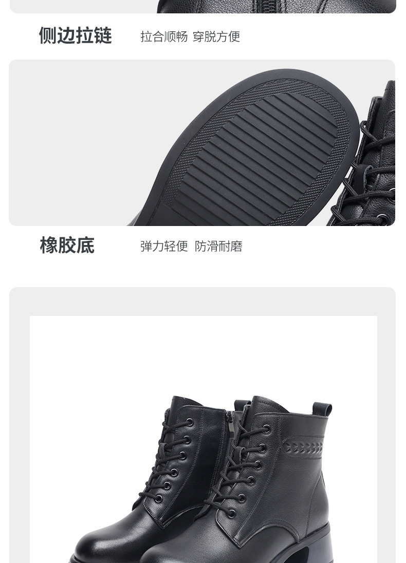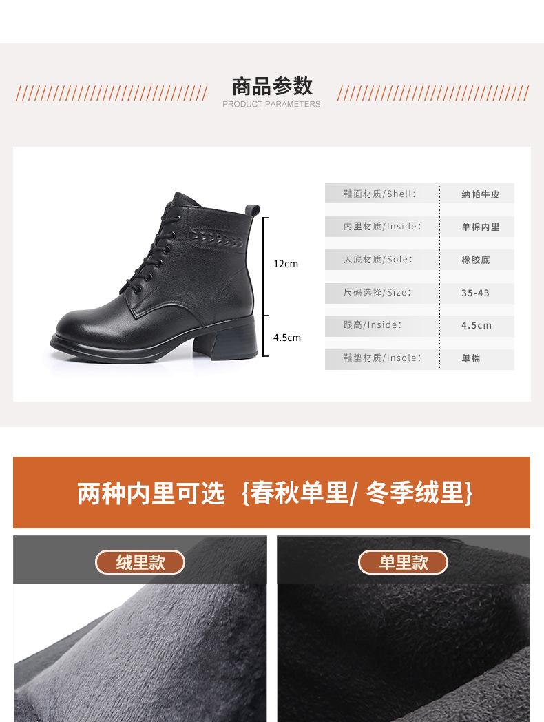 2023 가을과 겨울 새로운 첫 번째 레이어 소 가죽 미드 힐 영국 소프트 하단 짧은 부츠 두꺼운 힐 대형 사이드 지퍼 마틴 부츠스토어 가기