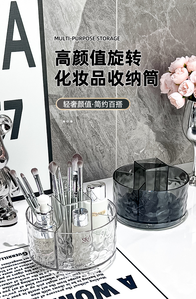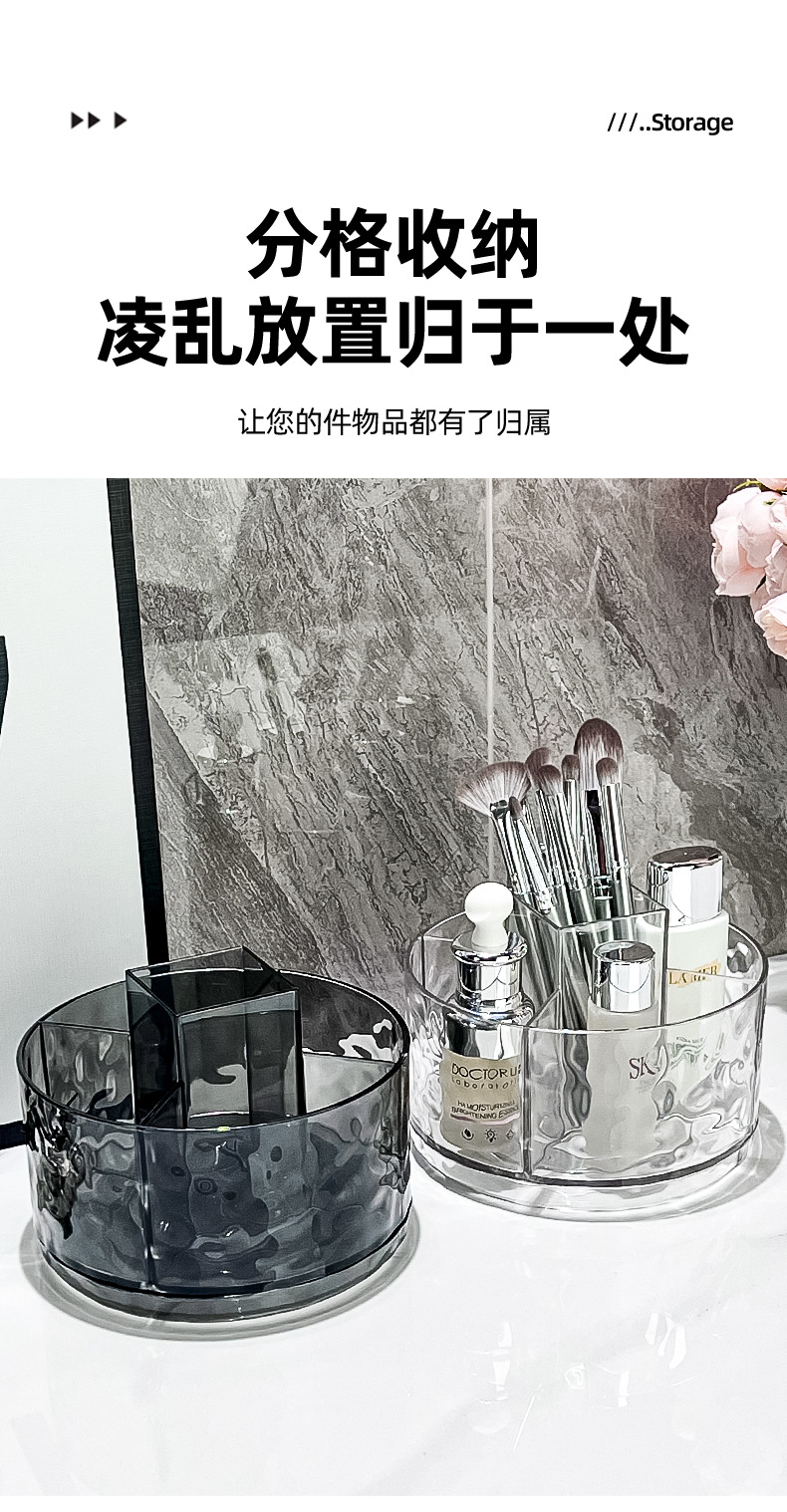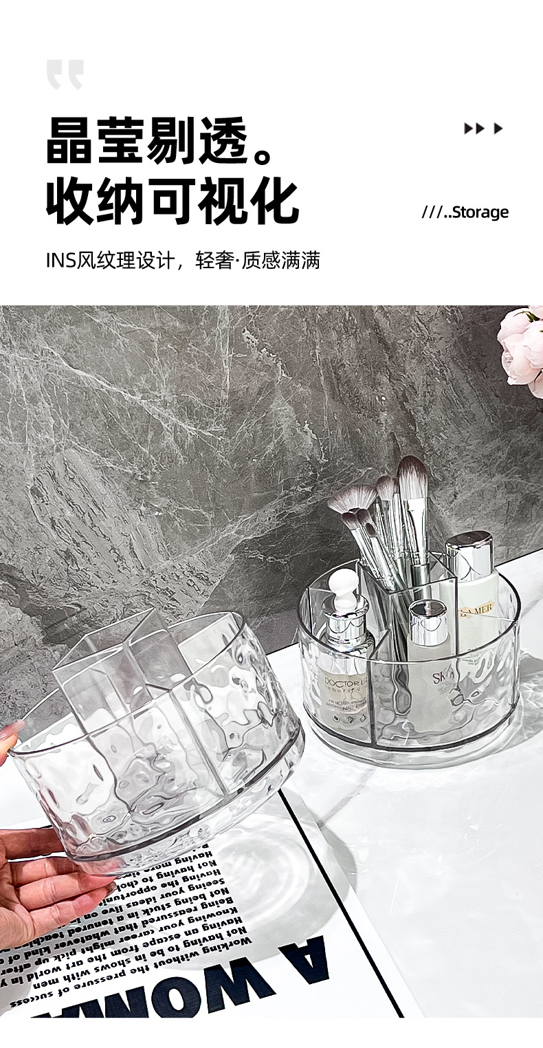 라이트 럭셔리 워터 리플 분할 회전 스토리지 박스 빙하 패턴 라이트 럭셔리 메이크업 스토리지 펜 홀더 데스크탑 장식품 스토리지 랙
