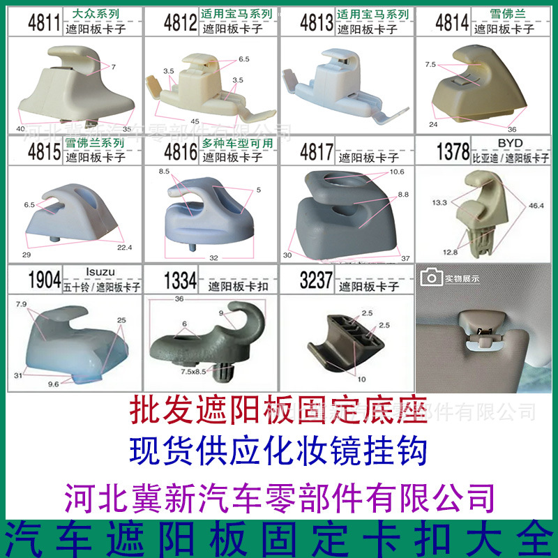 도매 자동차 태양 바이저 고정 기본 클립 버클 재고 태양 방패 메이크업 미러 기본 액세서리