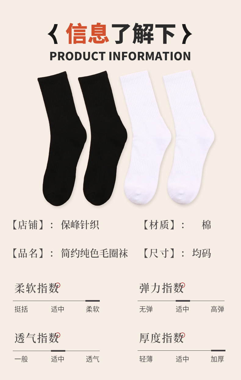 순면 테리 스포츠 양말 남녀공용 두꺼운 타월 밑창 단색 중간 길이 긴 양말 땀 흡수 통기성 방취 양말스토어 가기