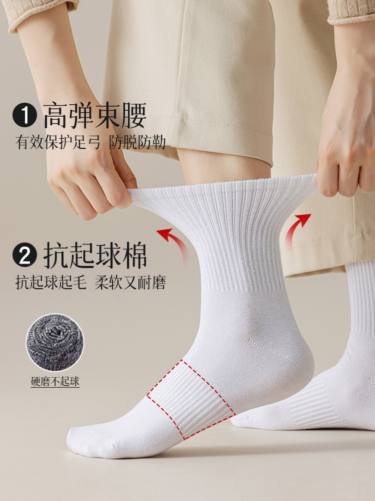 순면 테리 스포츠 양말 남녀공용 두꺼운 타월 밑창 단색 중간 길이 긴 양말 땀 흡수 통기성 방취 양말