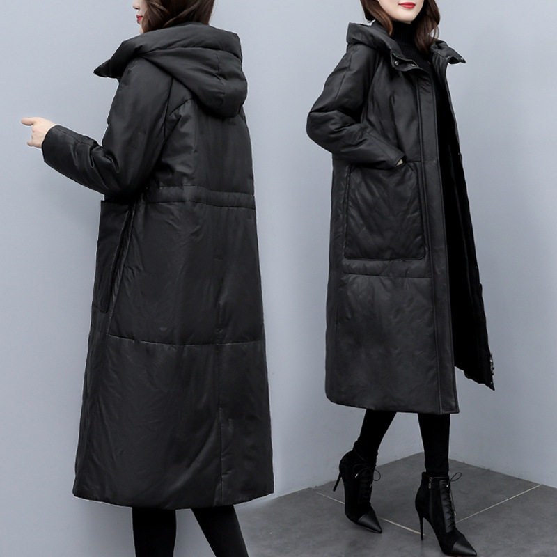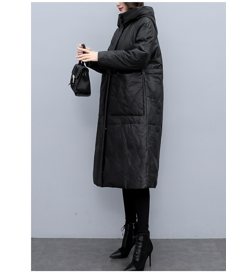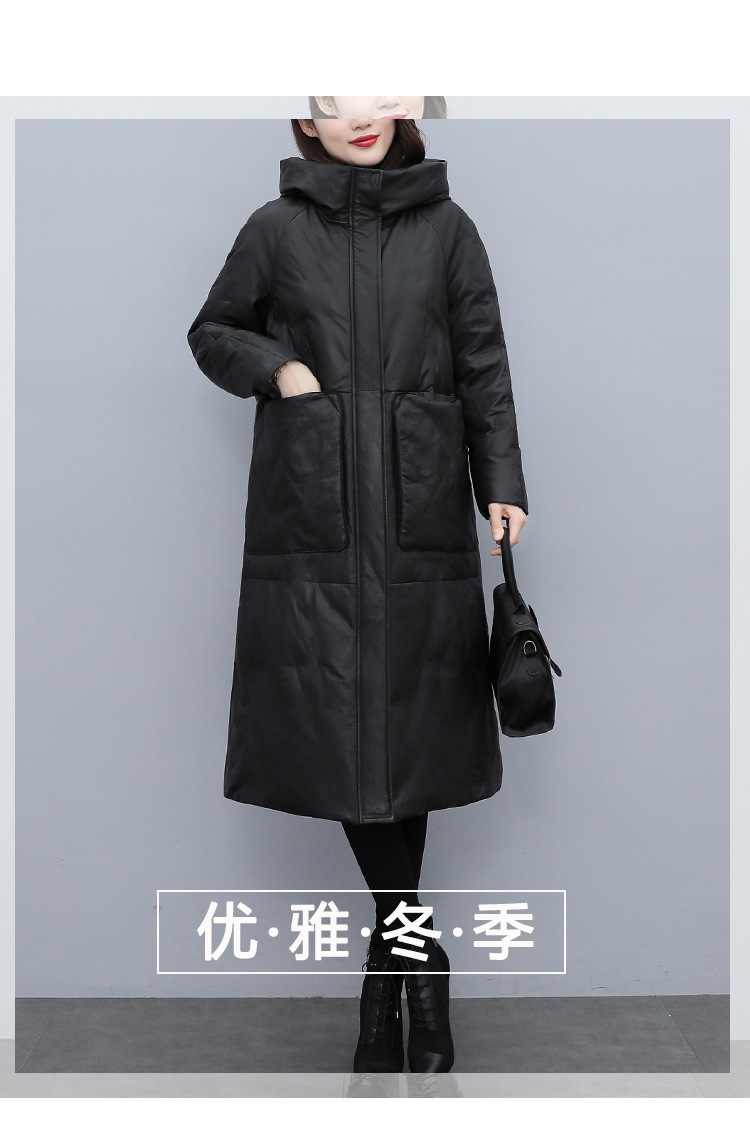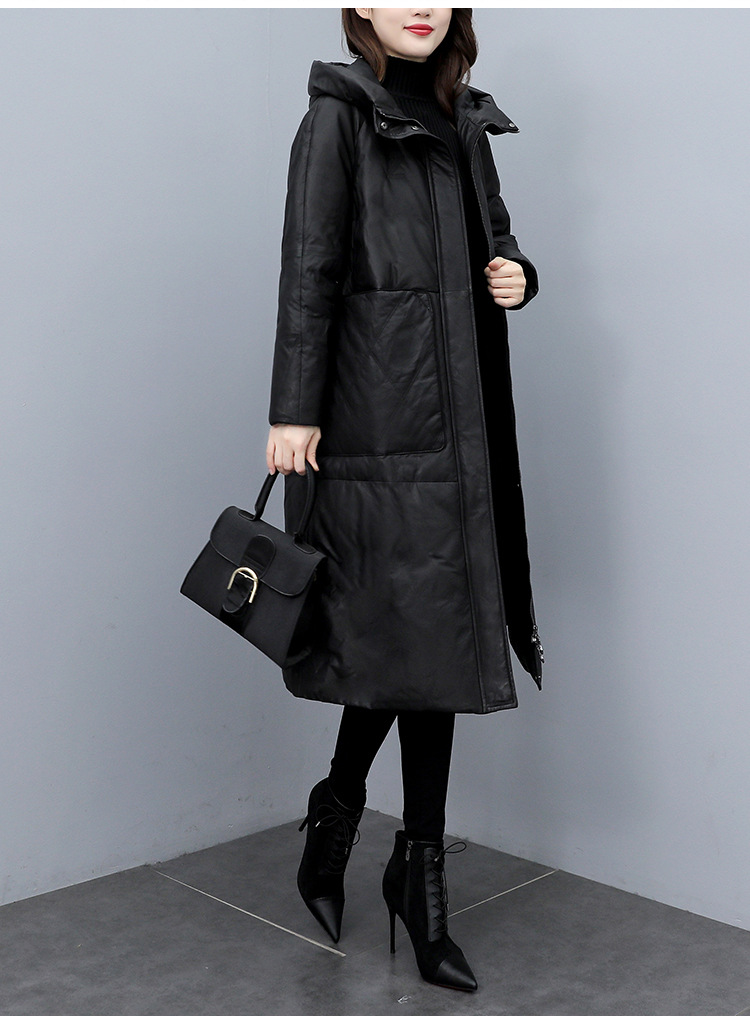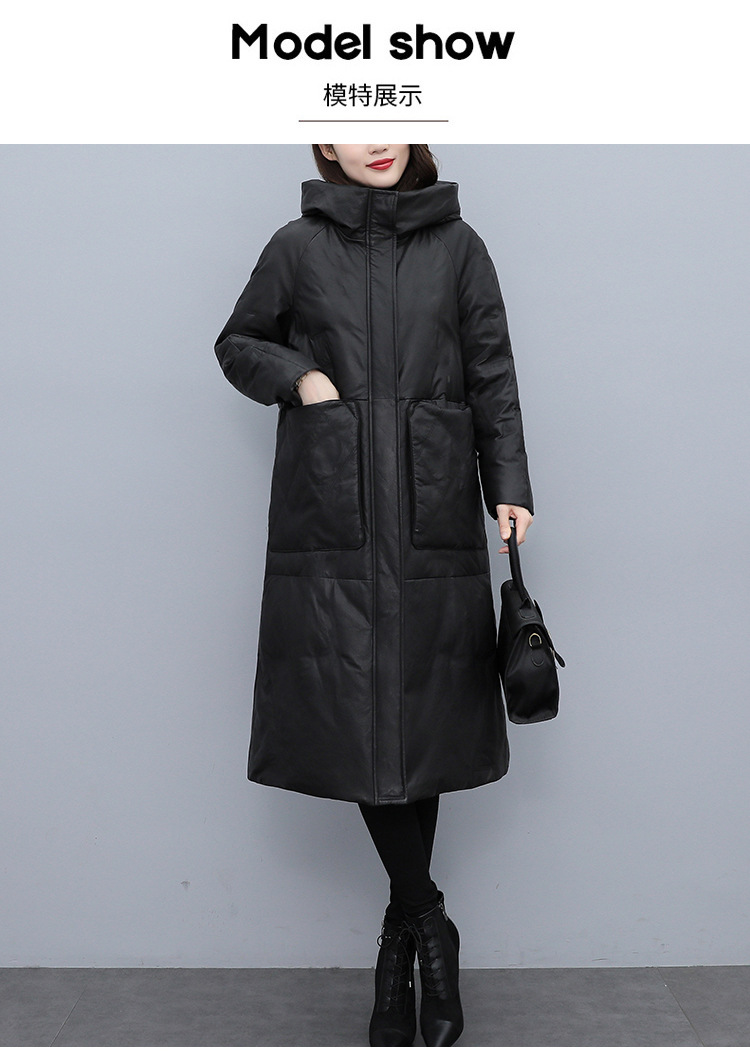 Haining 2025 겨울 신상 여성 정품 가죽 다운 후드 루즈한 대형 정품 양가죽 롱 코트스토어 가기