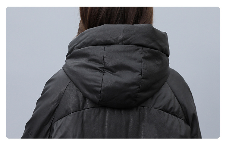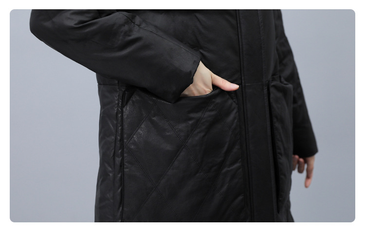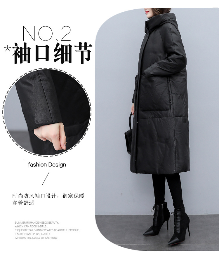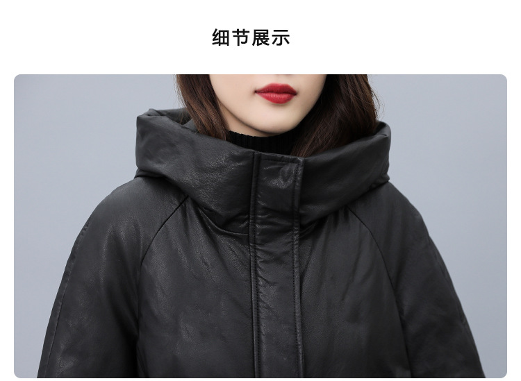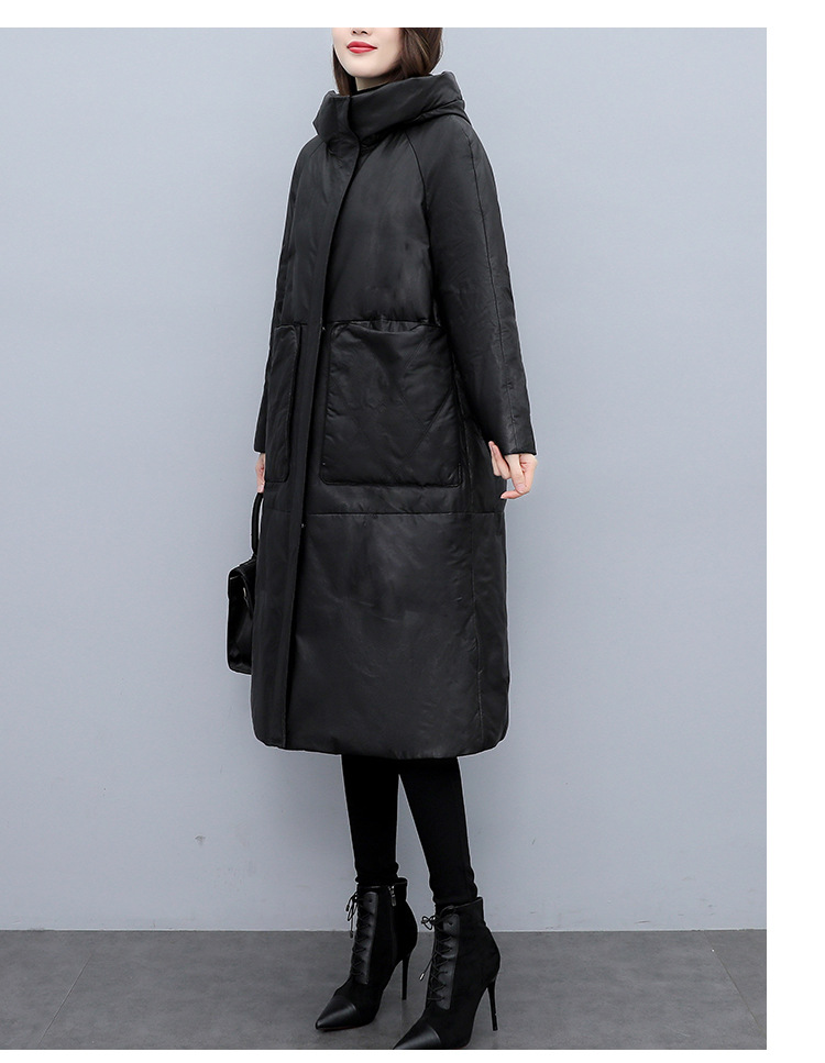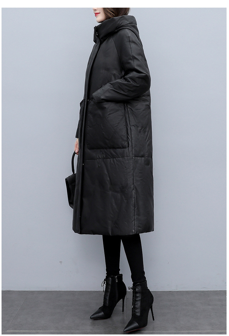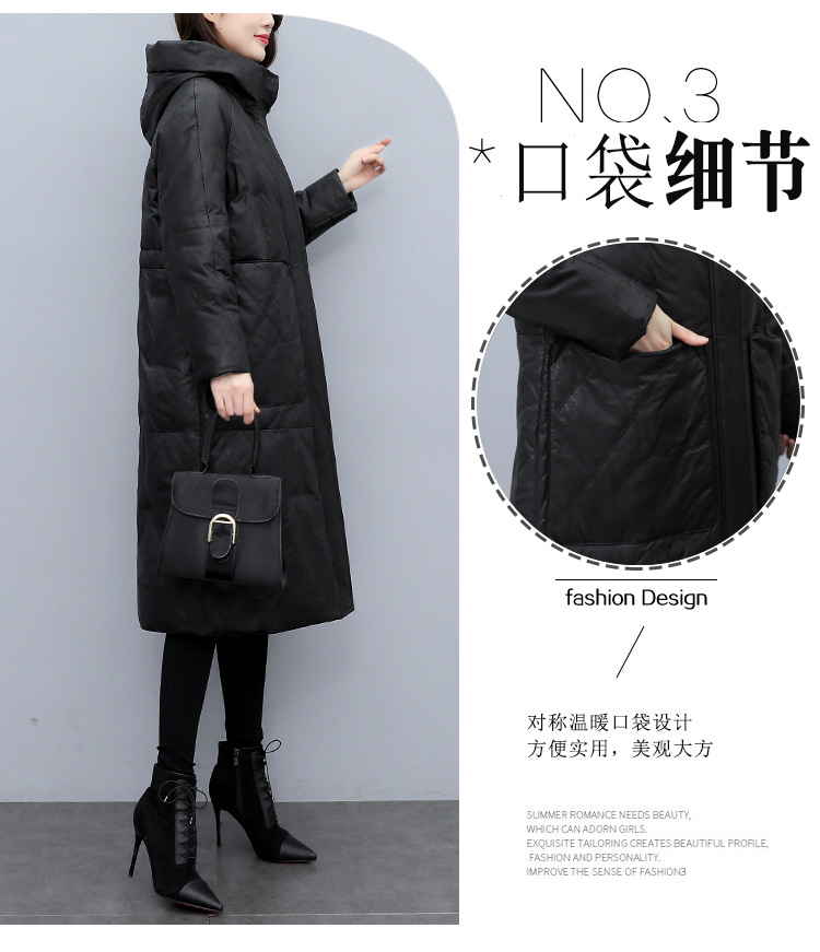 Haining 2025 겨울 신상 여성 정품 가죽 다운 후드 루즈한 대형 정품 양가죽 롱 코트스토어 가기