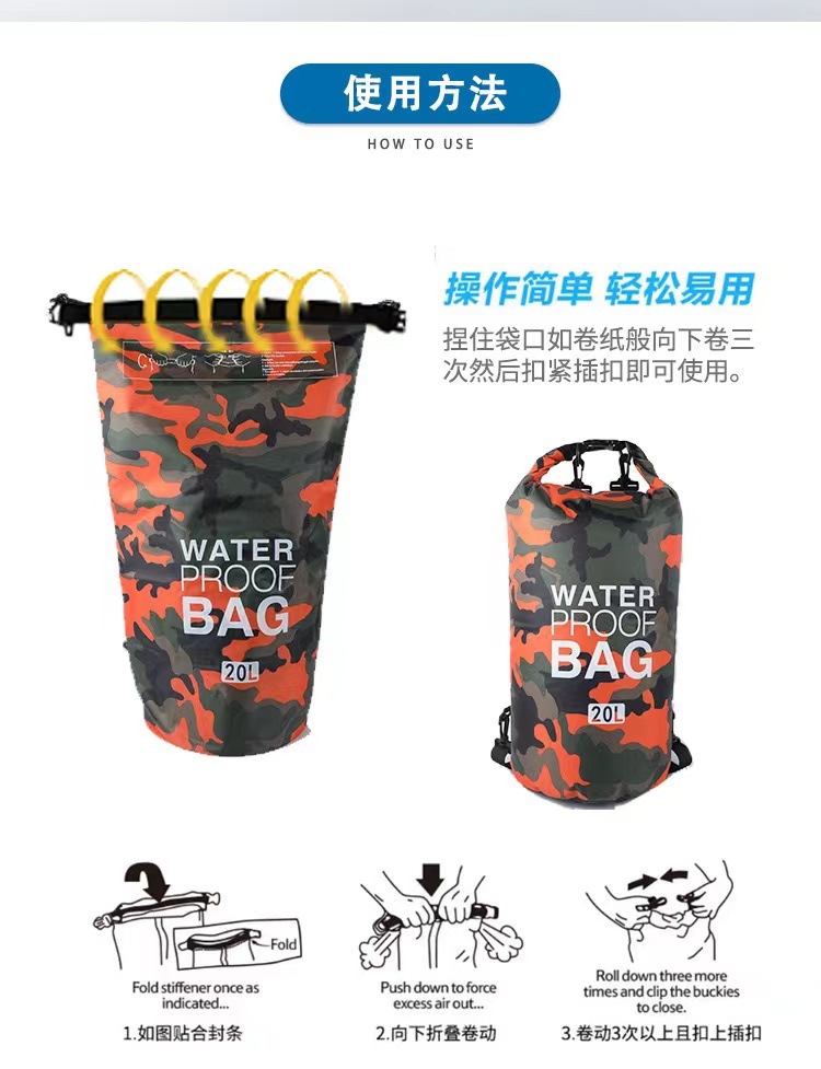 국경 방수 가방 위장 210PVC 방수 가방 야외 다기능 수영 휴대용 방수 배럴 재고스토어 가기