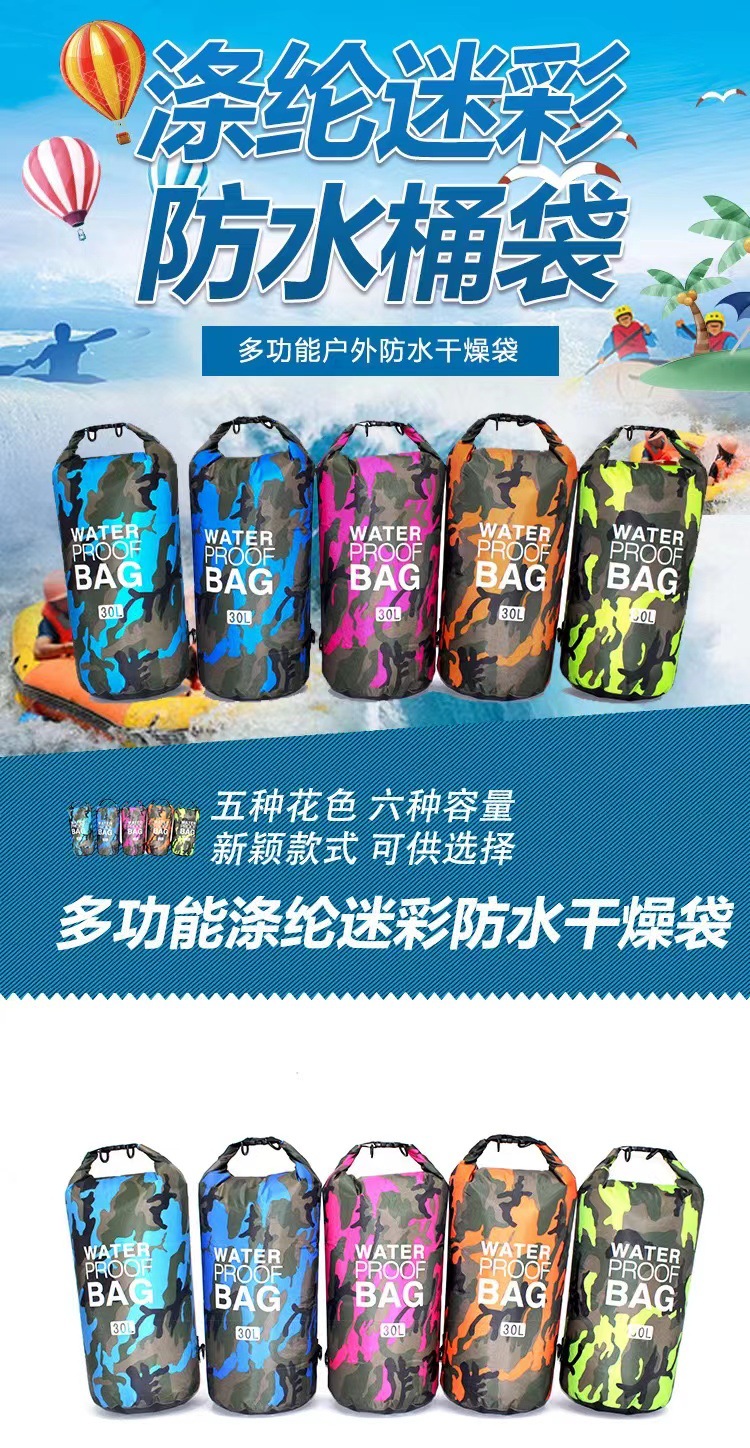 국경 방수 가방 위장 210PVC 방수 가방 야외 다기능 수영 휴대용 방수 배럴 재고