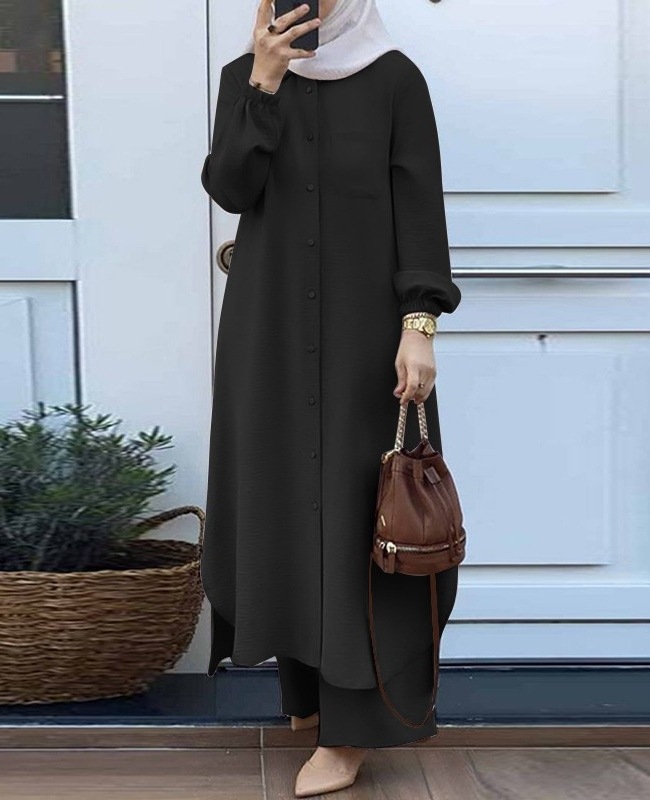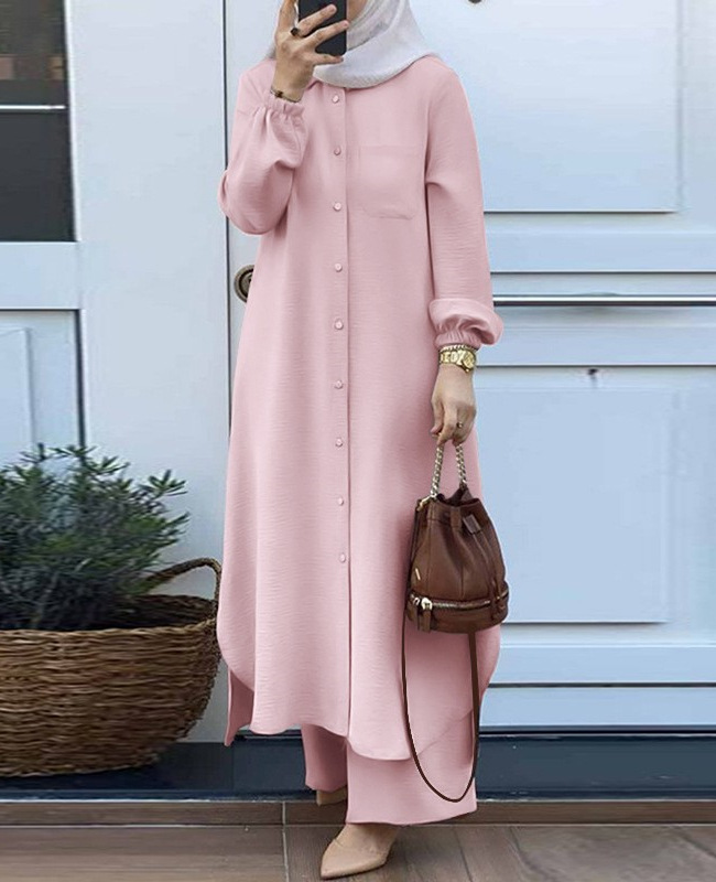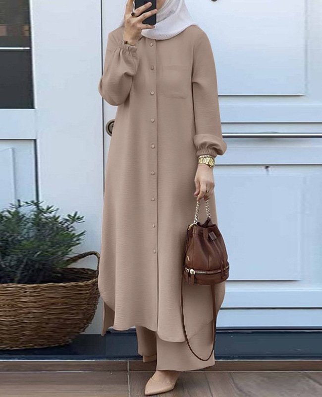 H707 크로스 보더 이슬람 아라비아 스타일 투피스 봄과 가을 새로운 여성용 긴팔 셔츠 바지 패션 캐주얼