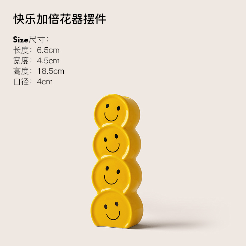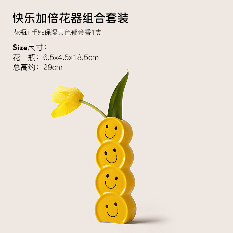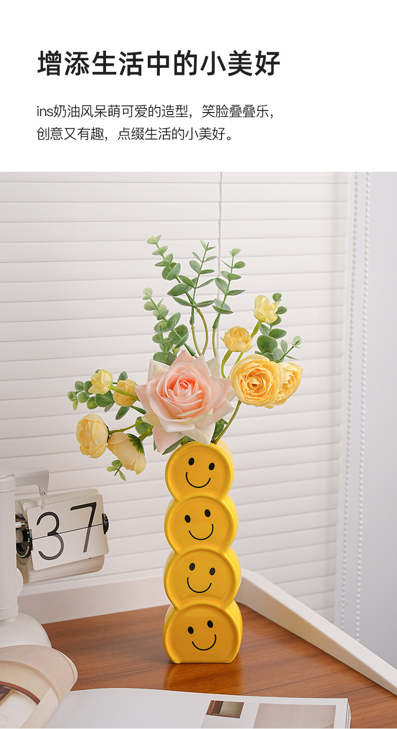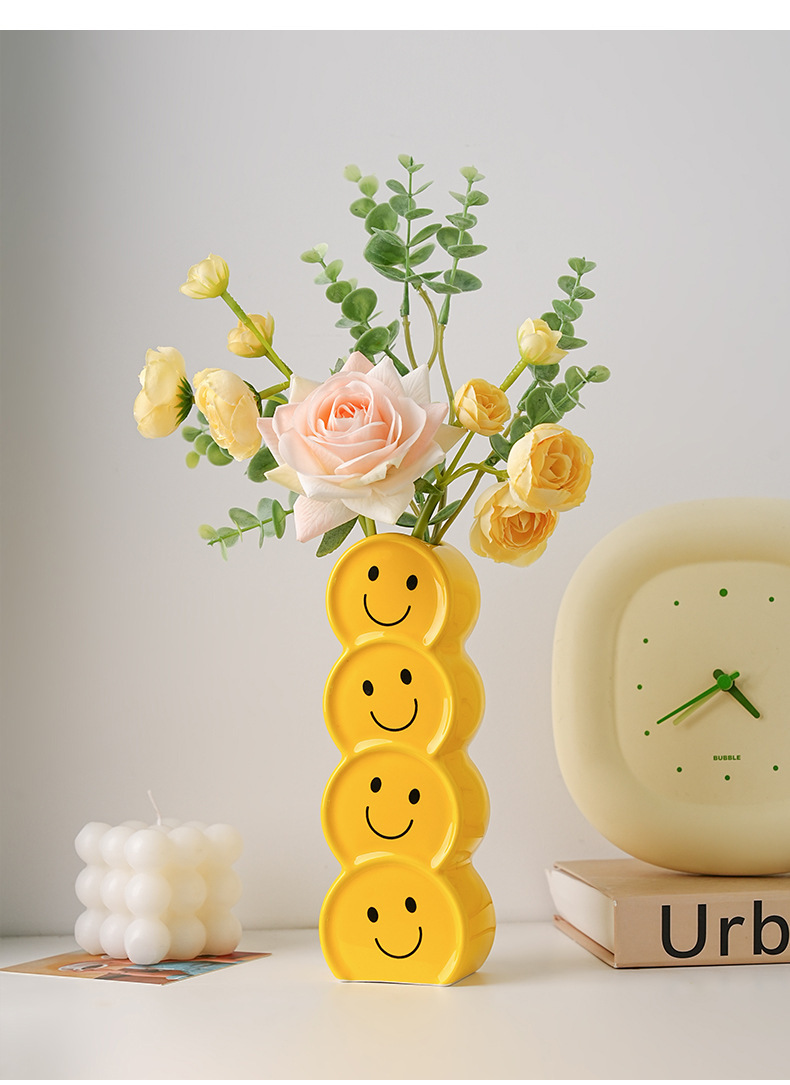 Behanmei 크리 에이 티브 웃는 얼굴 세라믹 꽃병 장식품 현대 간단한 가정 거실 꽃꽂이 말린 꽃 입구 장식