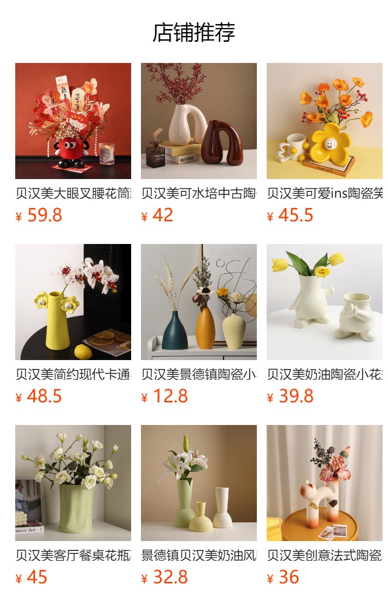 Behanmei 크리 에이 티브 웃는 얼굴 세라믹 꽃병 장식품 현대 간단한 가정 거실 꽃꽂이 말린 꽃 입구 장식스토어 가기