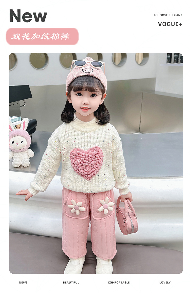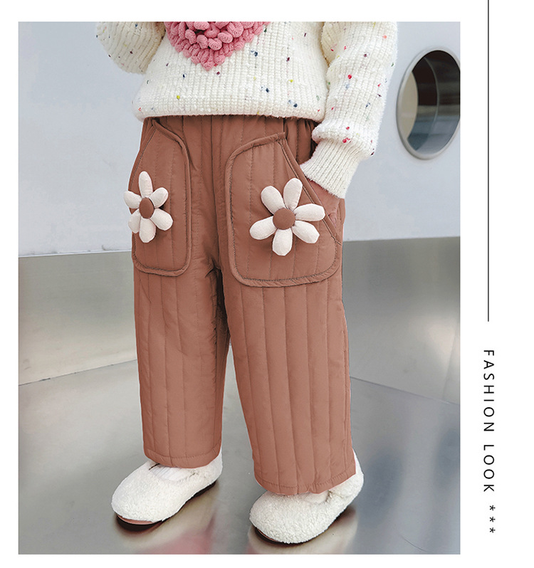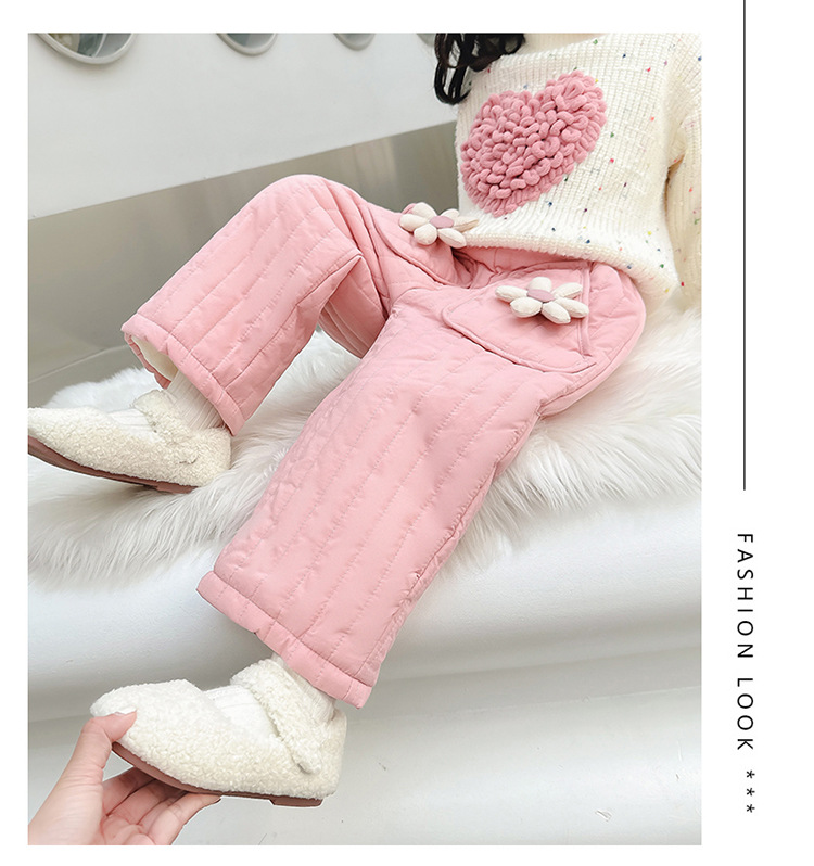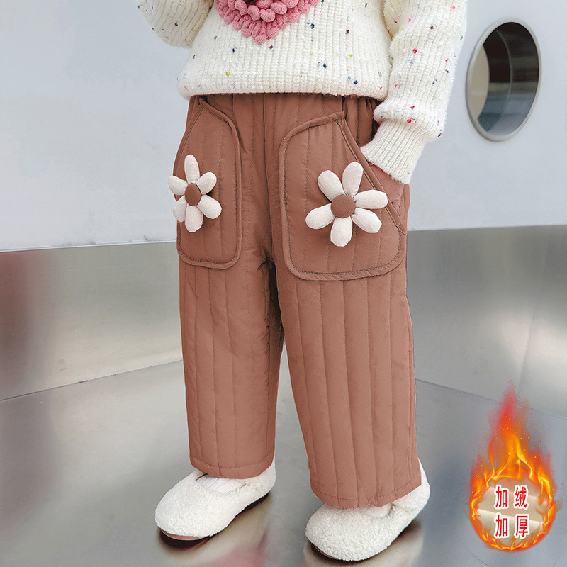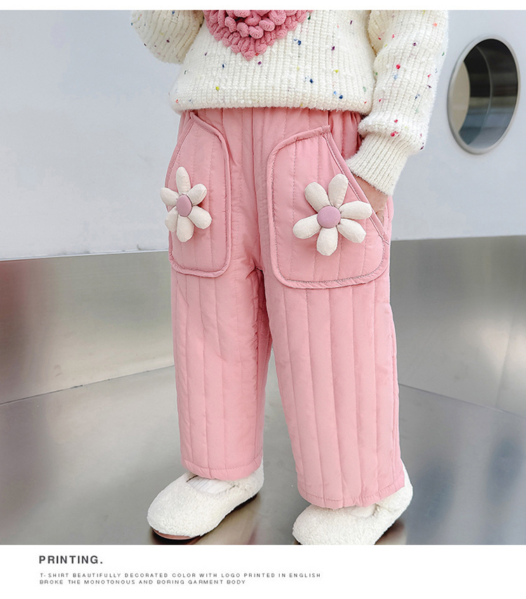 두꺼운 겨울 기모 여아 면 바지 새로운 어린이 3 단 면 따뜻한 바지 아기 여아 겨울 바지