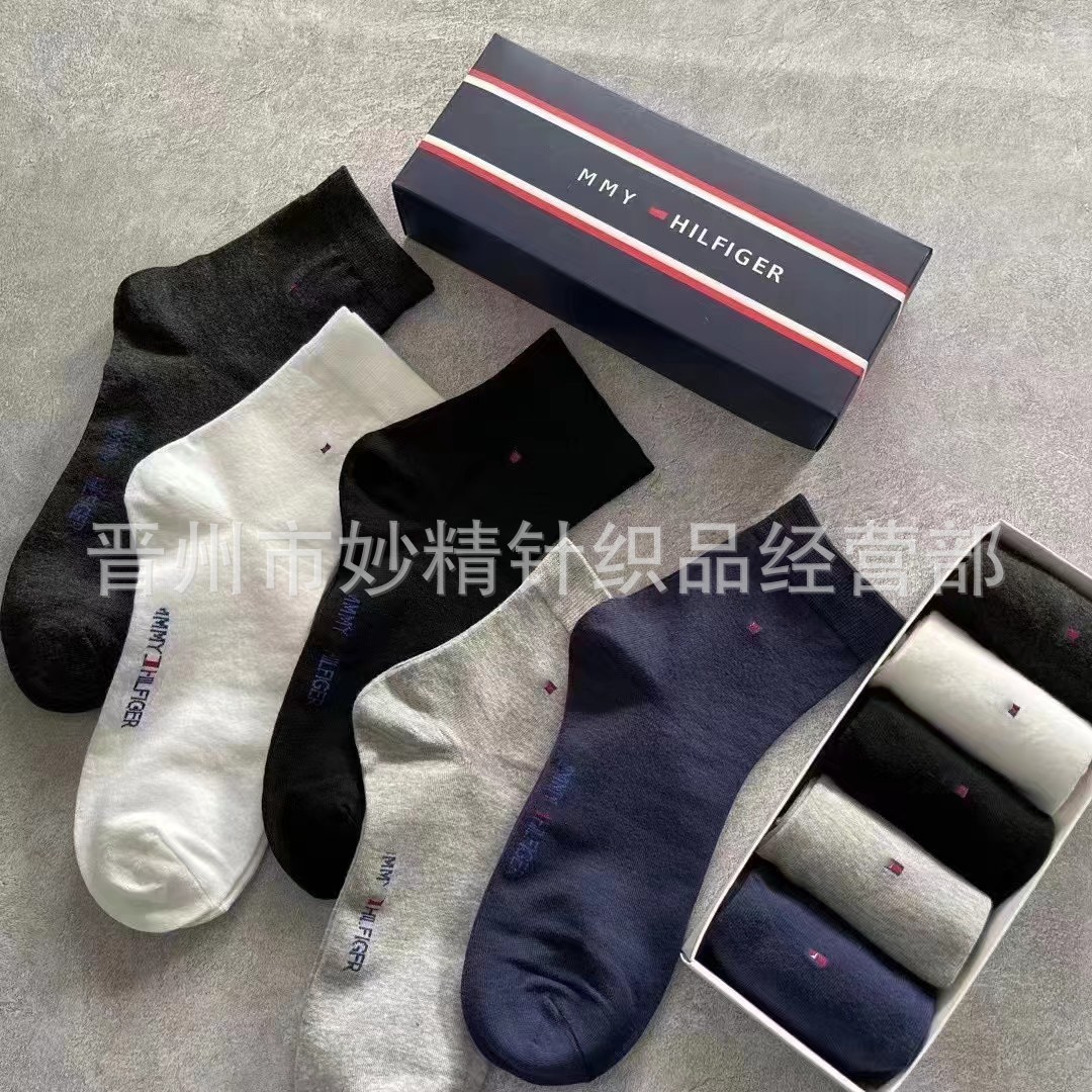 대외 무역 토미 양말 박스 미드 튜브 양말 남성 비즈니스 혼합 컬러 통기성 땀 흡수성 미드 도움말 미드 허리면 양말 도매