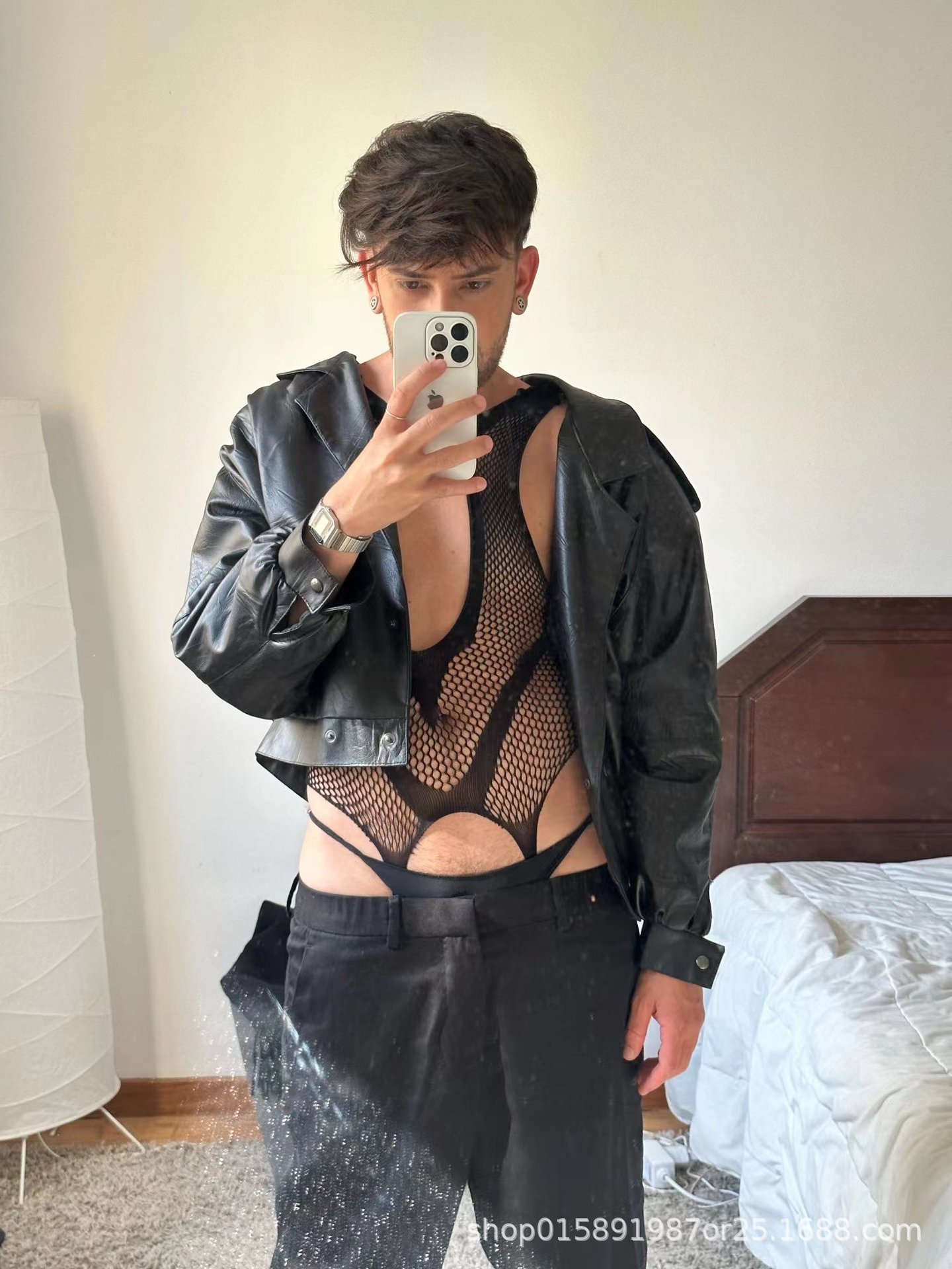 국경 간 남성 섹시한 점프 수트 점프 수트 바디 섹시한 속이 빈 유혹 양말 밑바닥 망사 스타킹 머리카락 세대스토어 가기