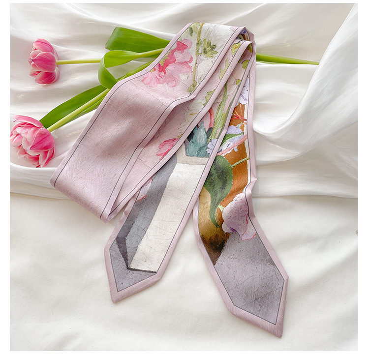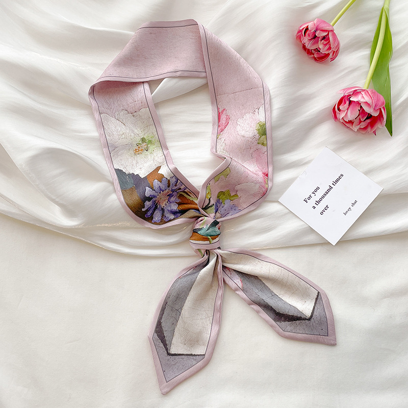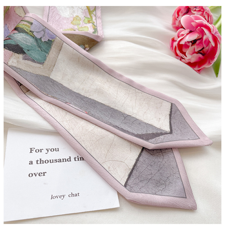 빈티지 프랑스 스타일 보우 헤어 실크 스카프 헤어 벨트 여성용 넥타이 스카프 후드 롱 리본 유화 모든 일치 봄과 가을