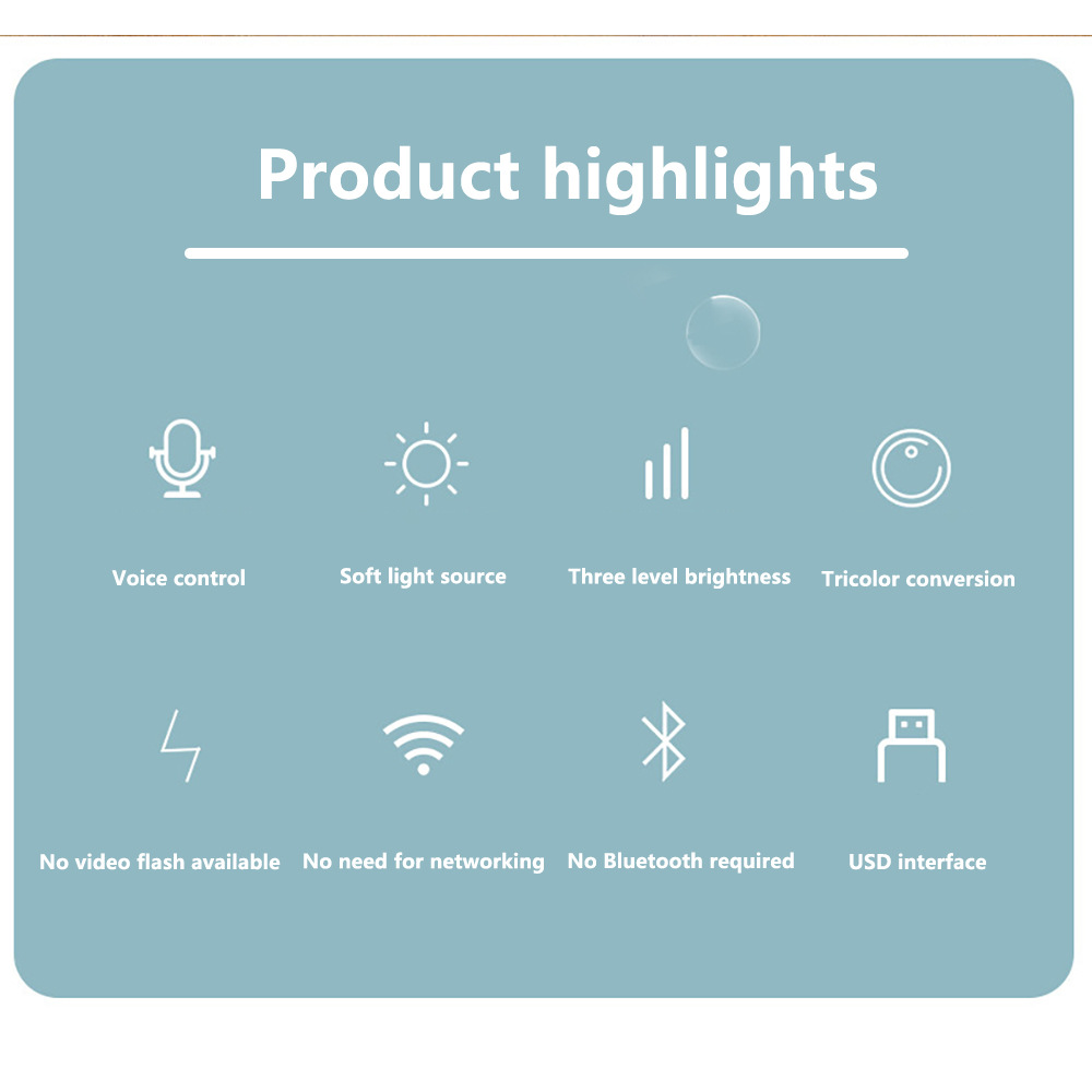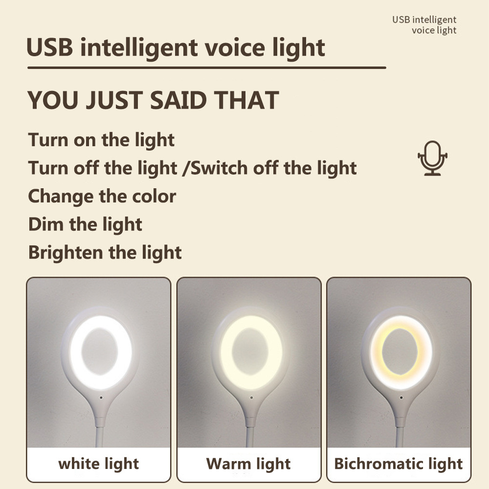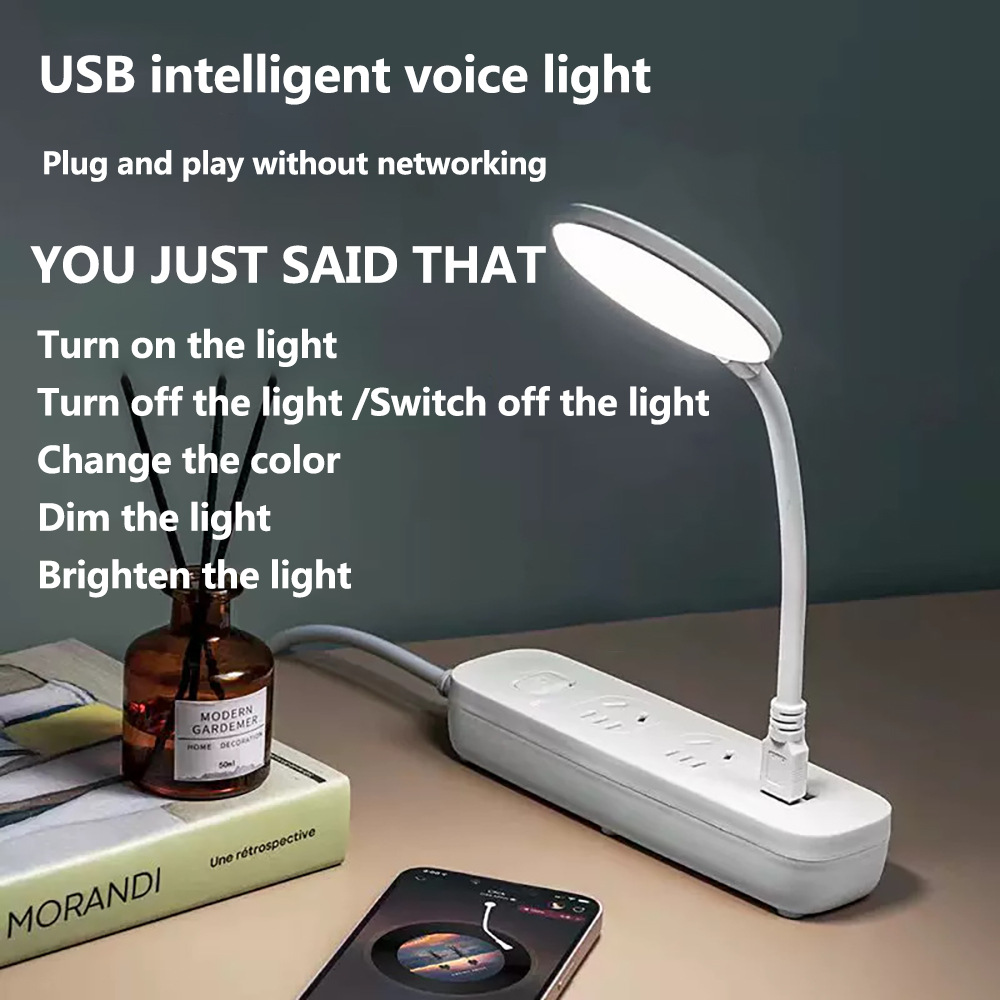 크로스보더 USB 음성 조명, 지능형 영어 음성 제어 조명, 미니 3단계 조절 휴대용 침대 옆 야간 조명 도매스토어 가기