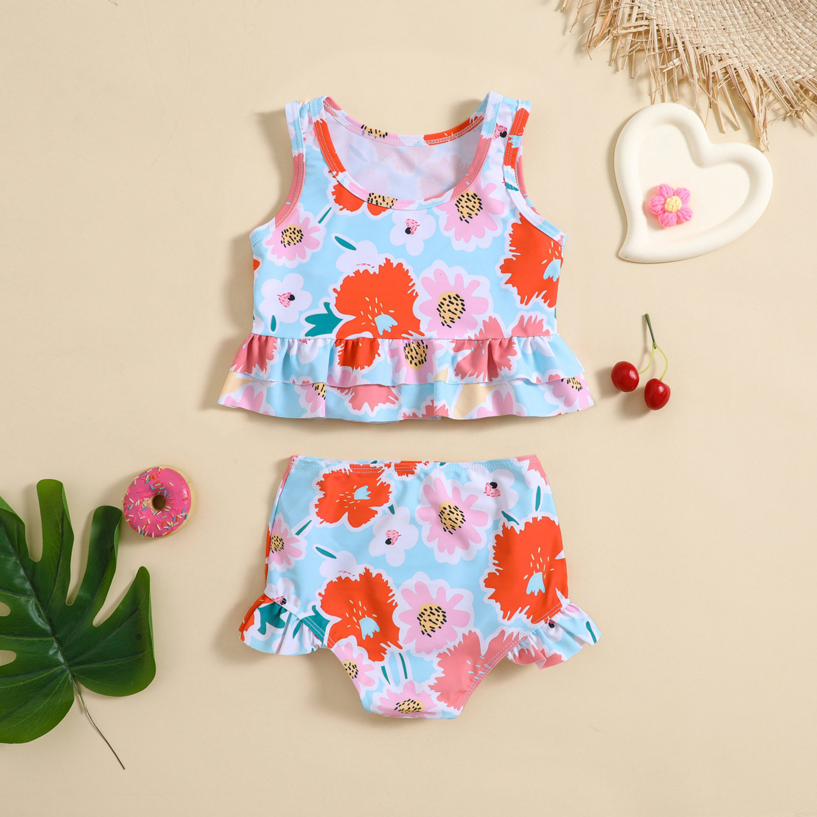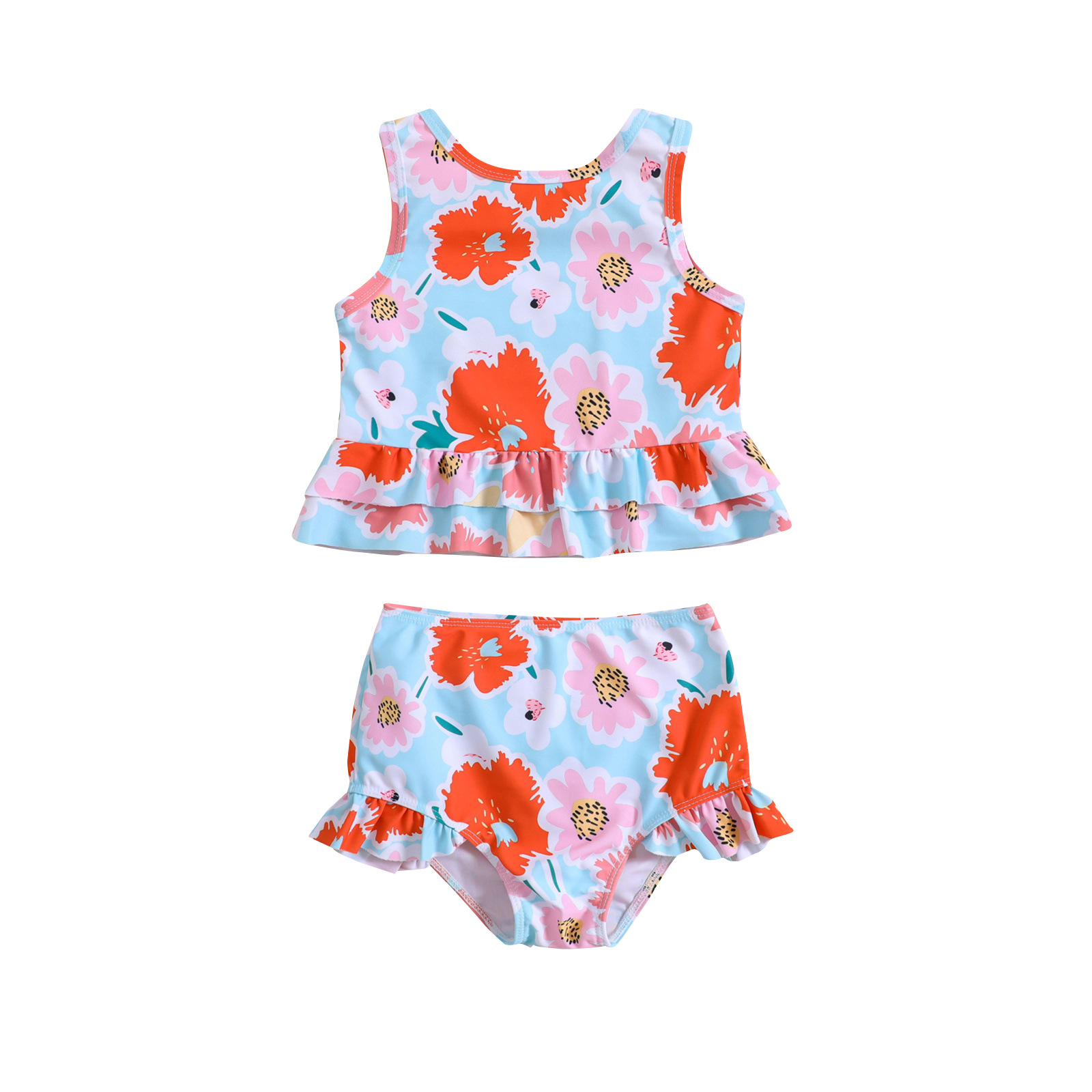 소녀와 아기 소녀를위한 크로스 국경 세트 귀여운 꽃 프린트 분할 수영복