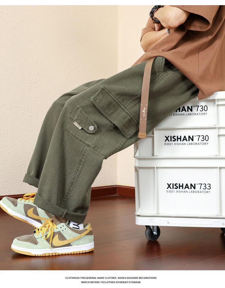 남성용 스트레이트 툴링 팬츠 남성용 봄과 가을 2023 새로운 루즈한 트렌디 브랜드 와이드 레그 팬츠 일본 캐주얼 팬츠스토어 가기