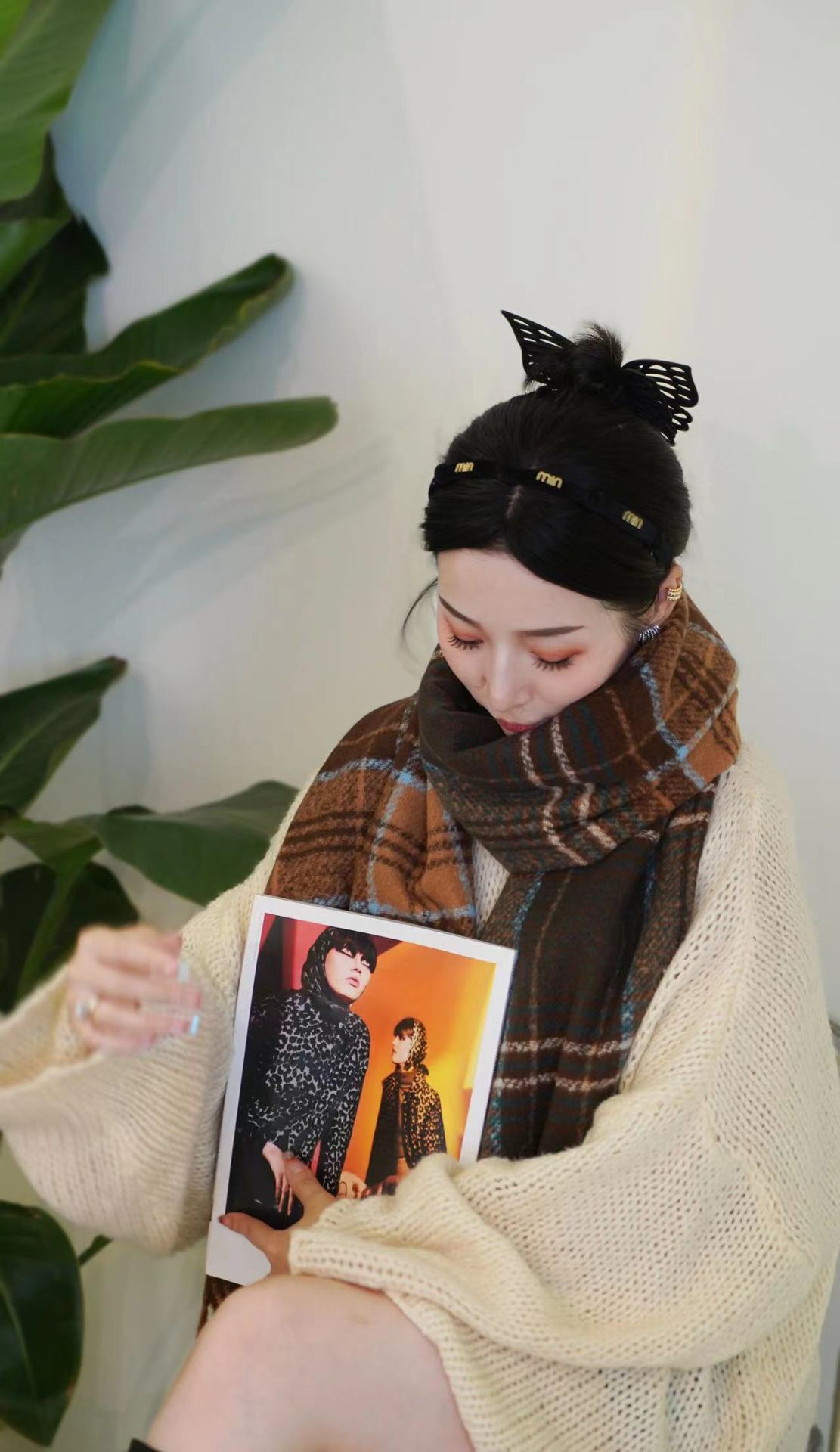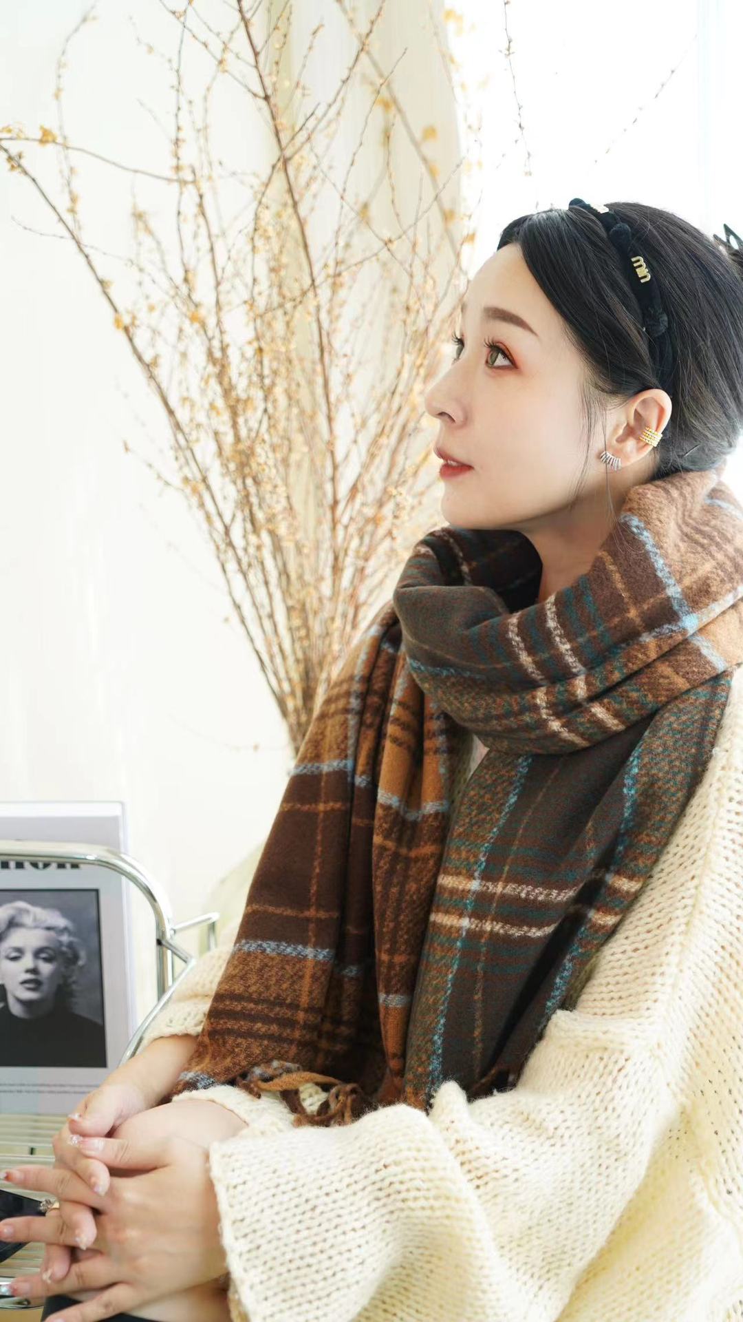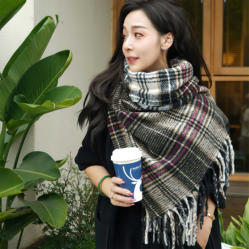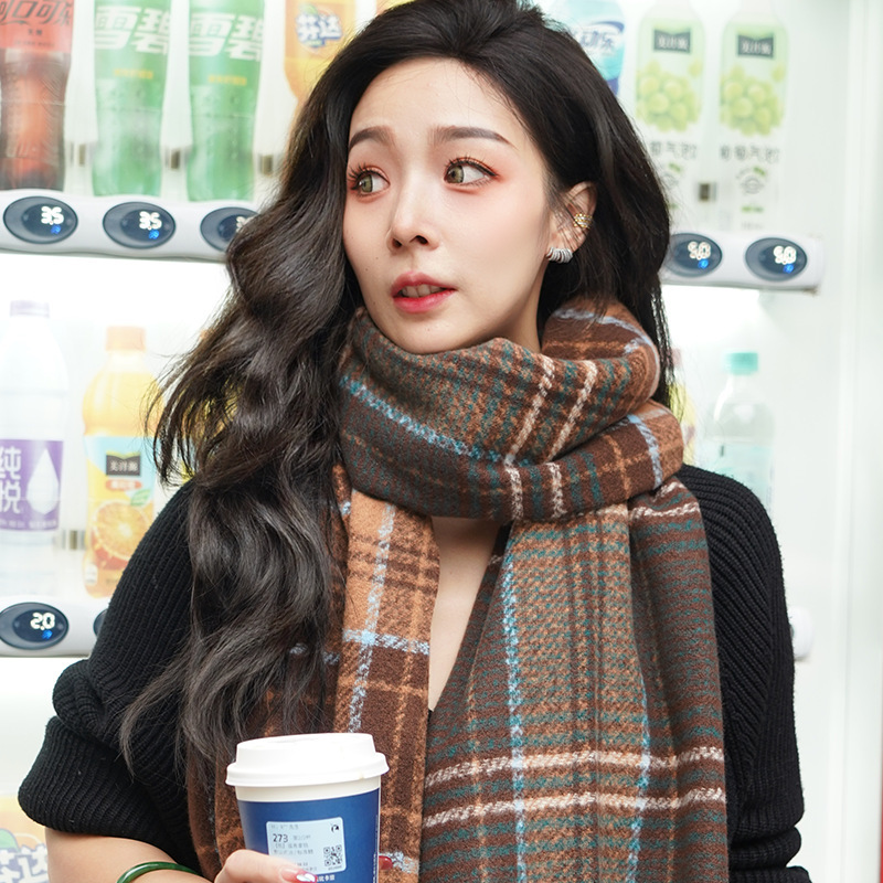 쉐이크 톤 같은 일본식 강모 작은 신선한 모조 캐시미어 스카프 숄 레트로 따뜻한 커플 모든 매치 격자 무늬 스카프스토어 가기