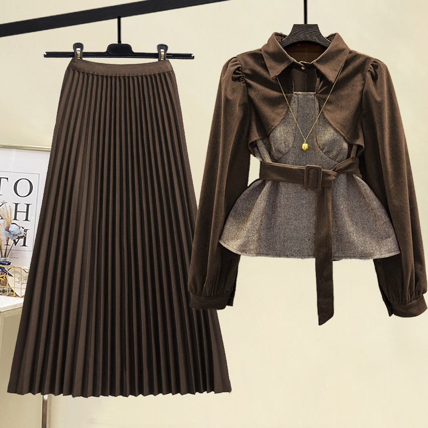 2024 봄 신상 여성의 슬림 가짜 투피스 세트 셔츠 + 하프 길이 스커트 슬림 패션 투피스 세트스토어 가기