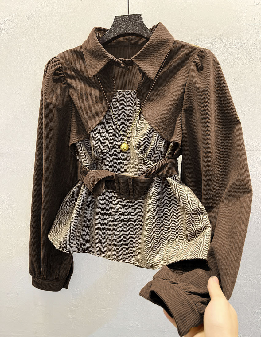 2024 봄 신상 여성의 슬림 가짜 투피스 세트 셔츠 + 하프 길이 스커트 슬림 패션 투피스 세트