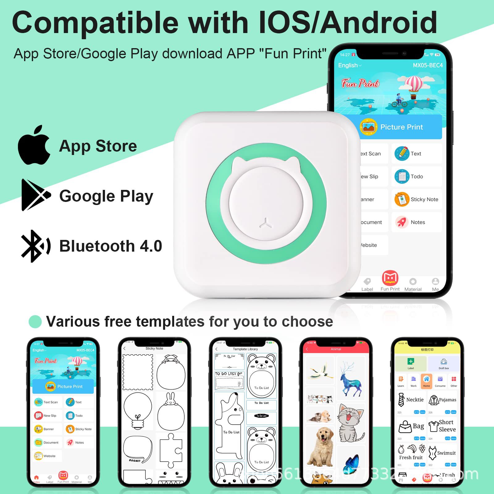 라벨 작은 휴대용 무선 열 사진 블루투스 프린터 포켓 학생 미니 잘못된 라벨 인쇄스토어 가기