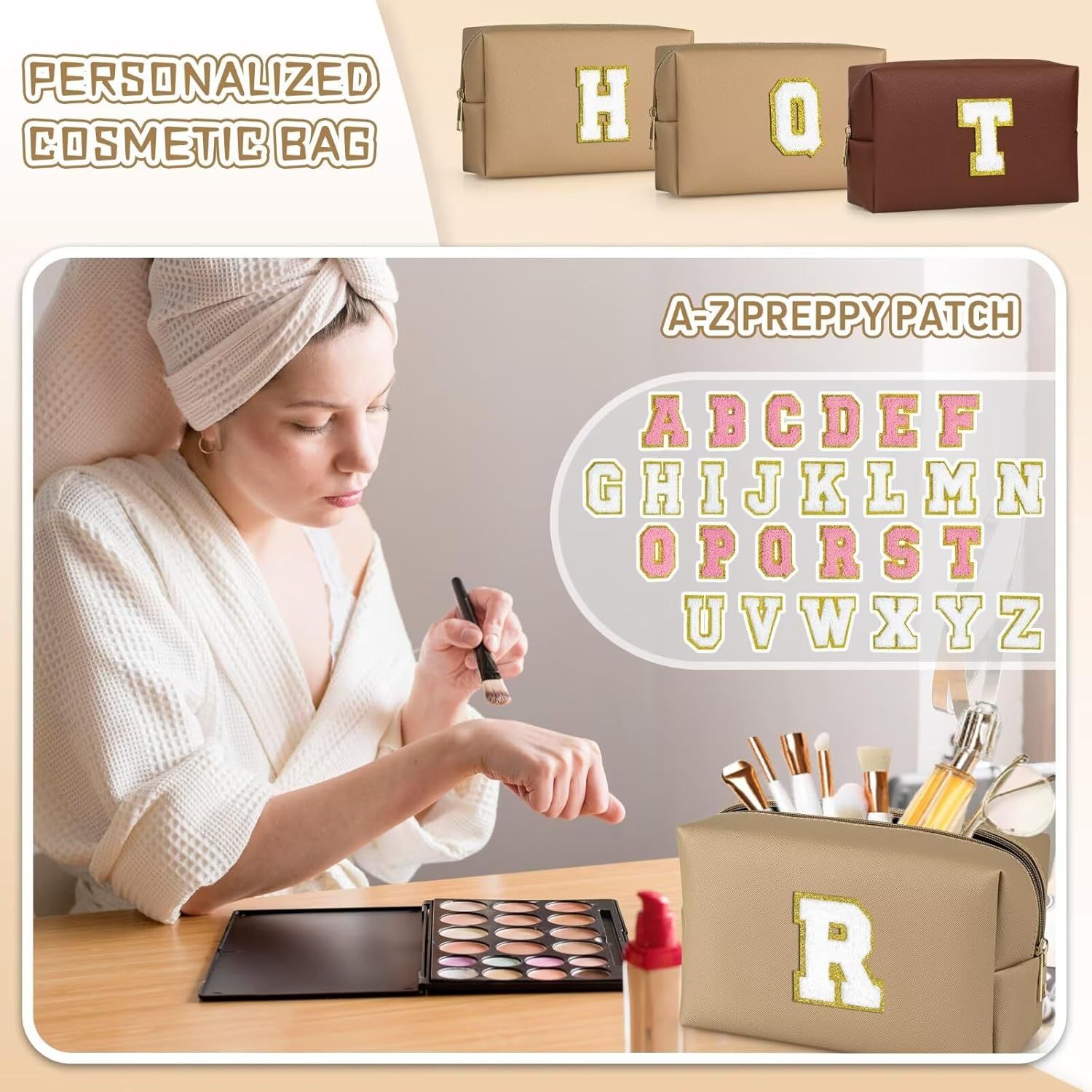 아마존 크로스 보더 26 자수 편지 화장품 가방 팔각형 워시 백 대용량 여행 보관 가방 클러치 백