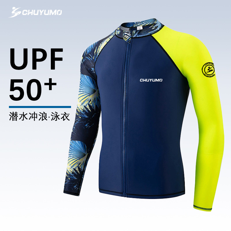 남성용 다이빙 슈트 수영복 스포츠 속건 서핑복 긴팔 프린트 지퍼 분리형 해파리 방지복 다이빙 슈트